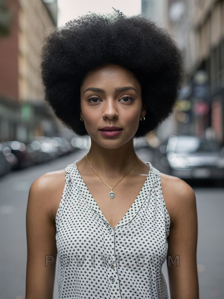 The afro puff is a classic and easy-to-do hairstyle that highlights the natural texture of your hair. This style involves pulling your hair up into a high puff, creating a bold and fun look perfect for casual outings or parties. It suits all face shapes and complements any eye color, making it a versatile choice.