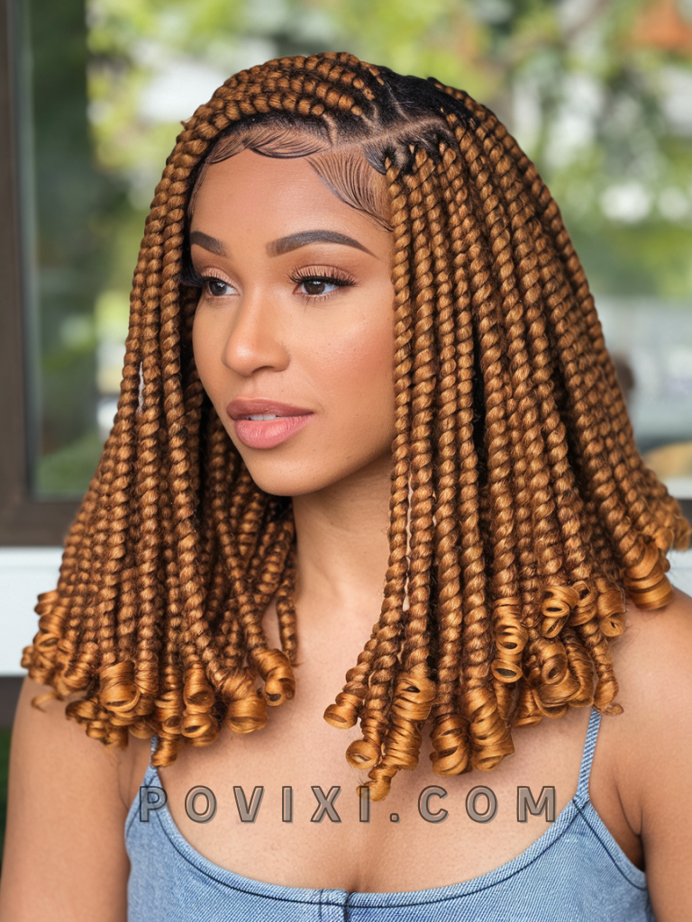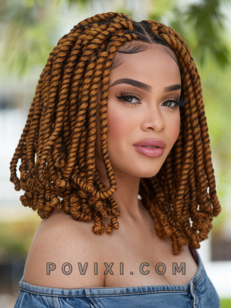 This style involves creating twists that stop mid-length, with optional beads or boho accessories for added flair. Regularly apply a conditioning oil to maintain shine and softness. For a bouncier finish, use lightweight mousse after styling.