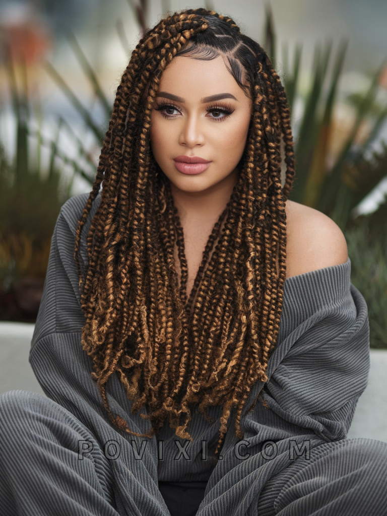 This style involves adding dark brown highlights to the twists, creating depth and dimension. Use a twisting butter for smooth styling and mist the twists with a nourishing spray daily to maintain luster.