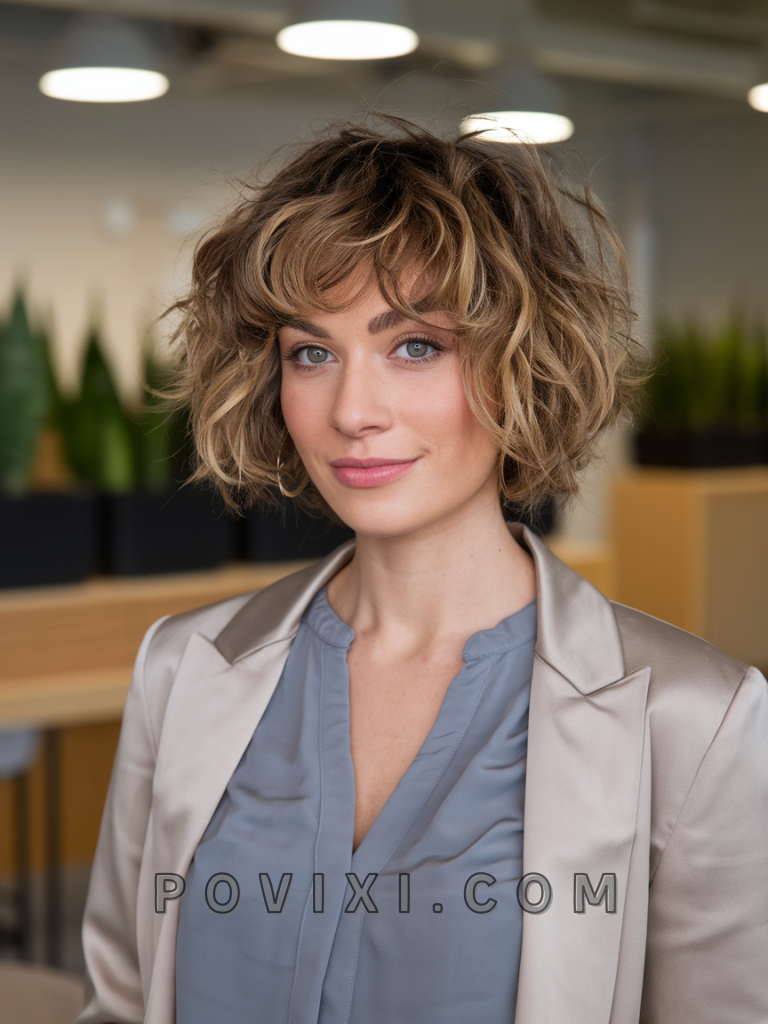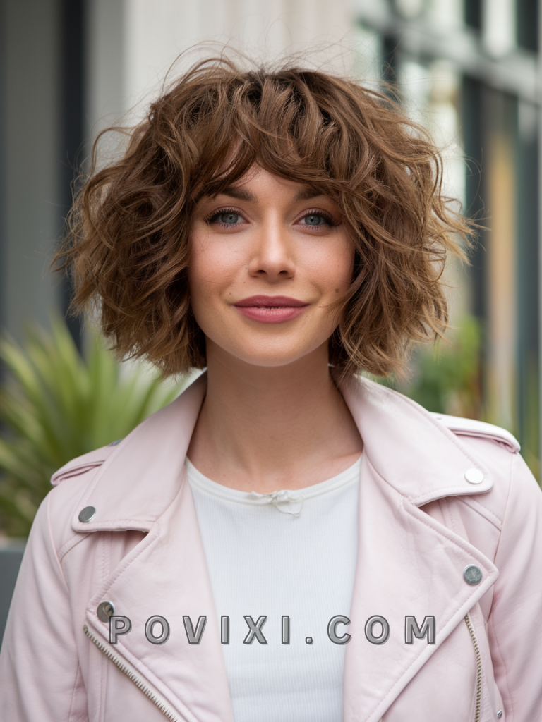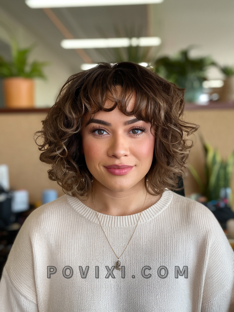 Curly Layered Bob with Bangs