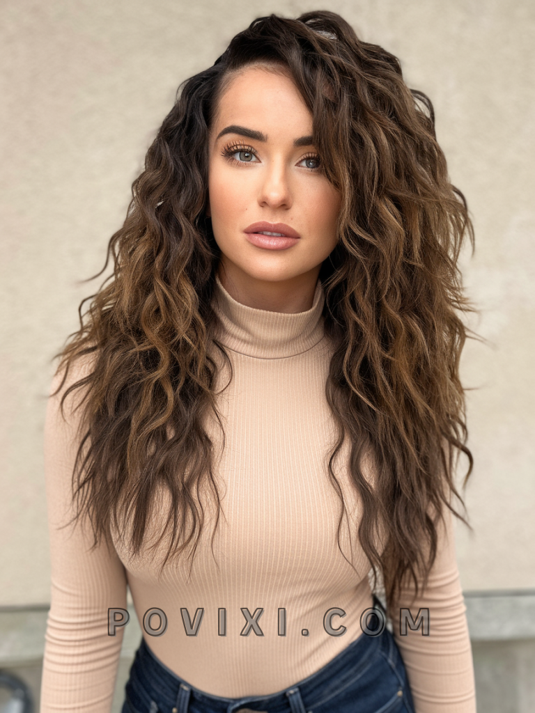 For those blessed with long hair, long layers combined with a side part create a dramatic, voluminous effect. This style is ideal for showing off your natural curls while keeping them light and bouncy. It’s perfect for glamorous evenings or weddings, especially when paired with elegant dresses. It complements round faces and looks striking on blondes or brunettes with bold eye makeup.