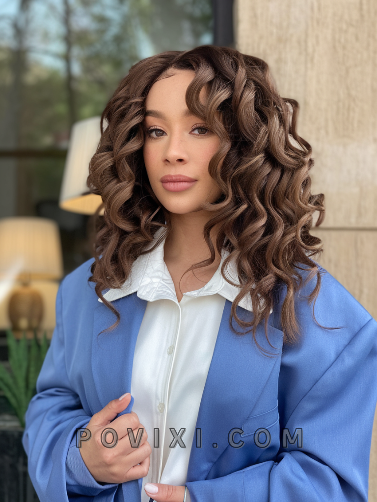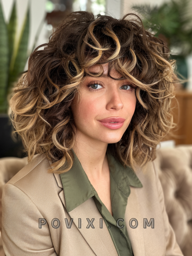 Layered curls at medium length are versatile and flattering. Adding highlights—whether caramel, blonde, or auburn—introduces dimension and brightness to your hair. This look is perfect for a casual brunch or a day at the office. It works well for 2b and 3a curl patterns, especially for individuals with heart-shaped or oval faces.