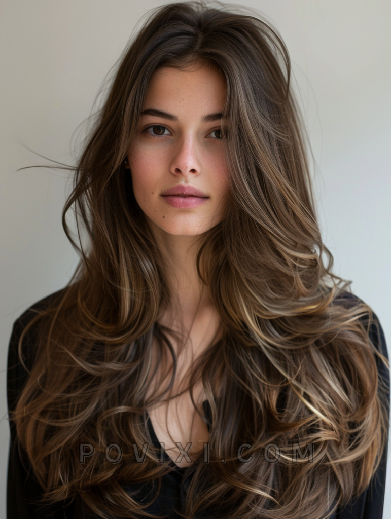 Long layers with subtle highlights add dimension and brightness to your hair, creating a sun-kissed effect. This hairstyle is ideal for those looking to add some color to their look without a drastic change. The highlights should be a few shades lighter than your natural color to create a natural, blended effect.