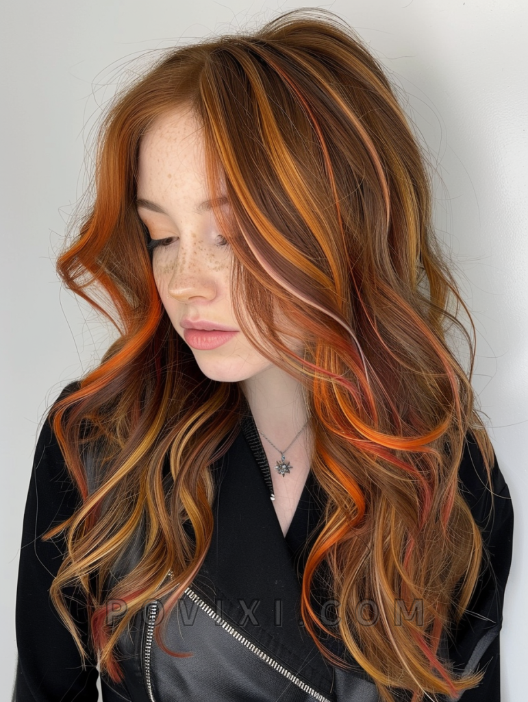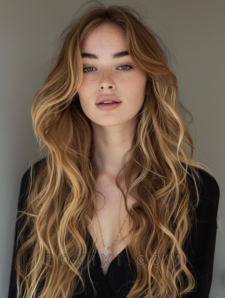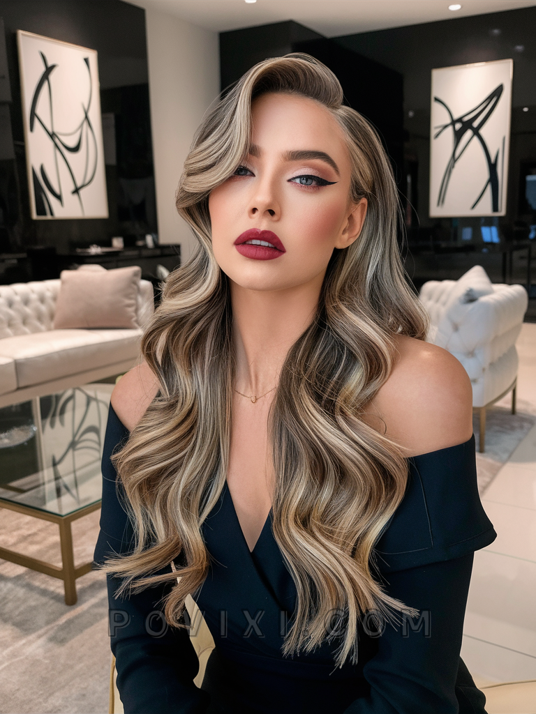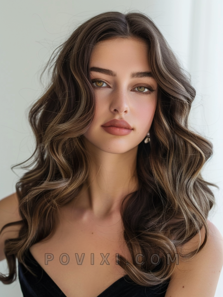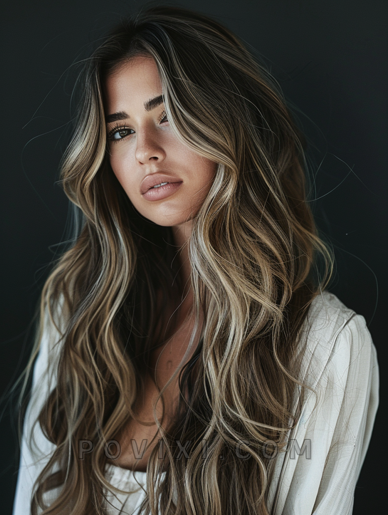 Long waves with hidden highlights add a touch of color and dimension to your hair without being too bold. The hidden highlights peek through the waves, creating a subtle and playful effect. This style is ideal for those looking to experiment with color without a full commitment.