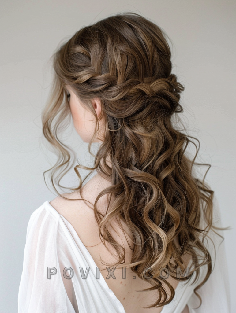 Long waves with a twisted half-updo offer a romantic and elegant look that’s perfect for weddings or formal events. The waves add texture and movement, while the twisted half-updo adds a touch of sophistication. This style works well for those with any face shape and hair type.