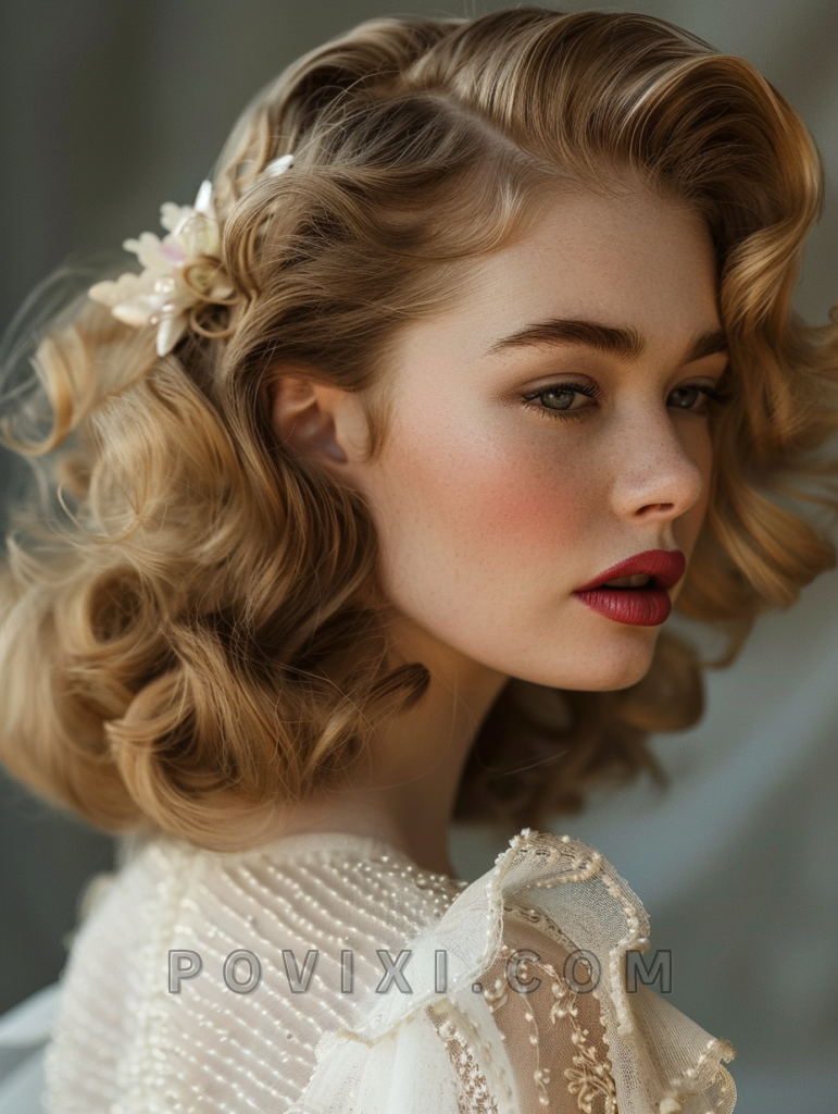 Romantic waves with floral accessories create a soft and feminine look that’s perfect for weddings or special events. The waves add texture and movement, while the floral accessories add a whimsical touch. This style is ideal for those with any face shape and hair type.