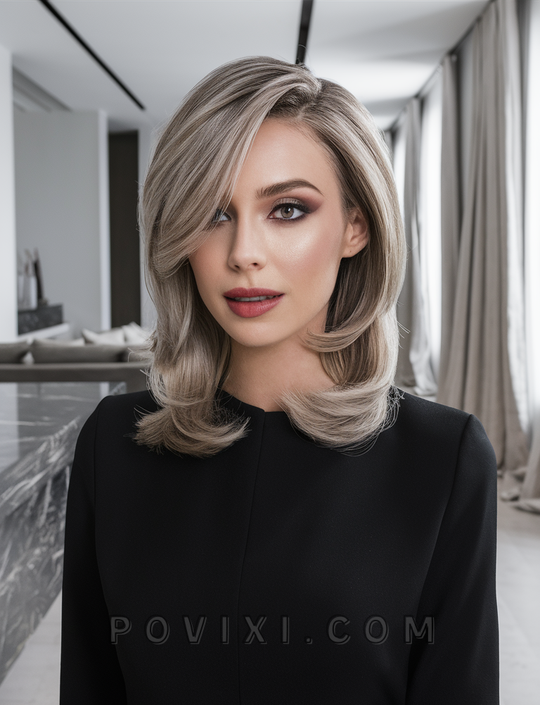 To achieve this style, ask your stylist for balayage highlights that start mid-length and blend into the ends. Layer the hair to add movement and prevent the color from looking too harsh. Use a color-protecting shampoo and conditioner, such as L’Oréal’s EverPure Blonde, to maintain the vibrancy of the highlights. Regular trims will keep the layers looking fresh and healthy.