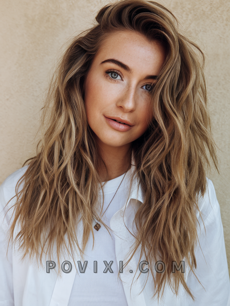 The wavy long shag celebrates the beauty of natural waves, offering a relaxed and effortless look. Perfect for casual outings, beach vacations, or boho-inspired events, this hairstyle enhances oval and heart-shaped faces. It works wonderfully with light or medium eye colors, adding a sun-kissed charm to your appearance.