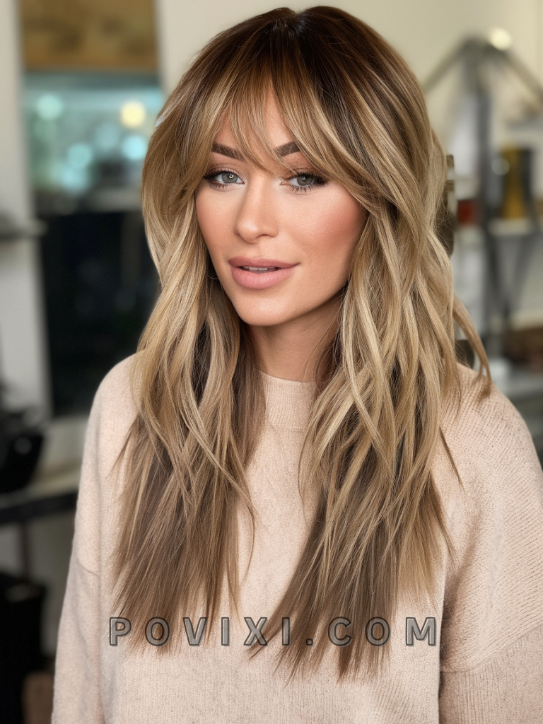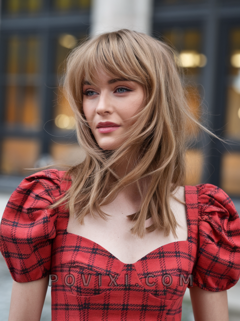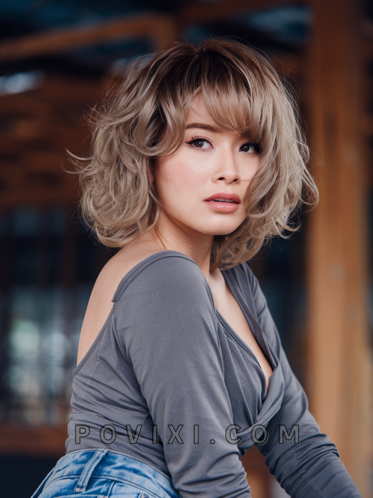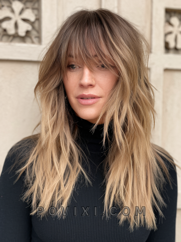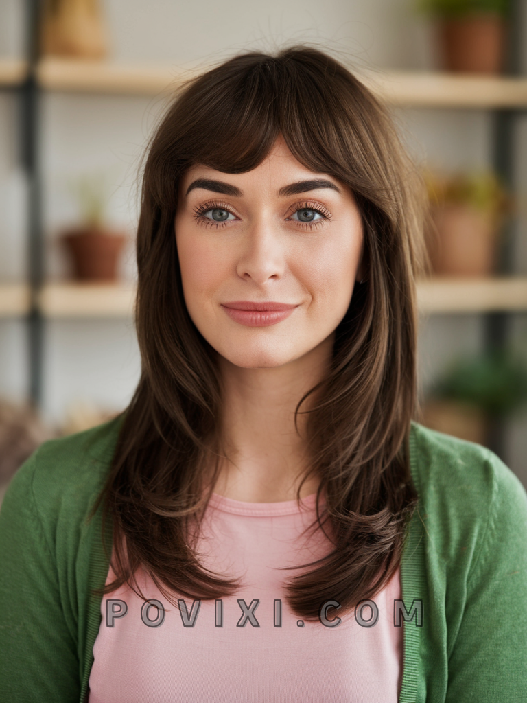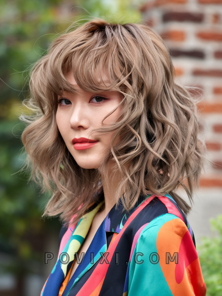 The shag with bangs is a modern classic that balances boldness with sophistication. This style features soft, feathered layers complemented by blunt or wispy bangs that frame the face beautifully. It’s ideal for casual outings, music festivals, or even a chic office look. Best suited for oval or heart-shaped faces, it enhances eyes of any color, making them pop with its playful texture.
