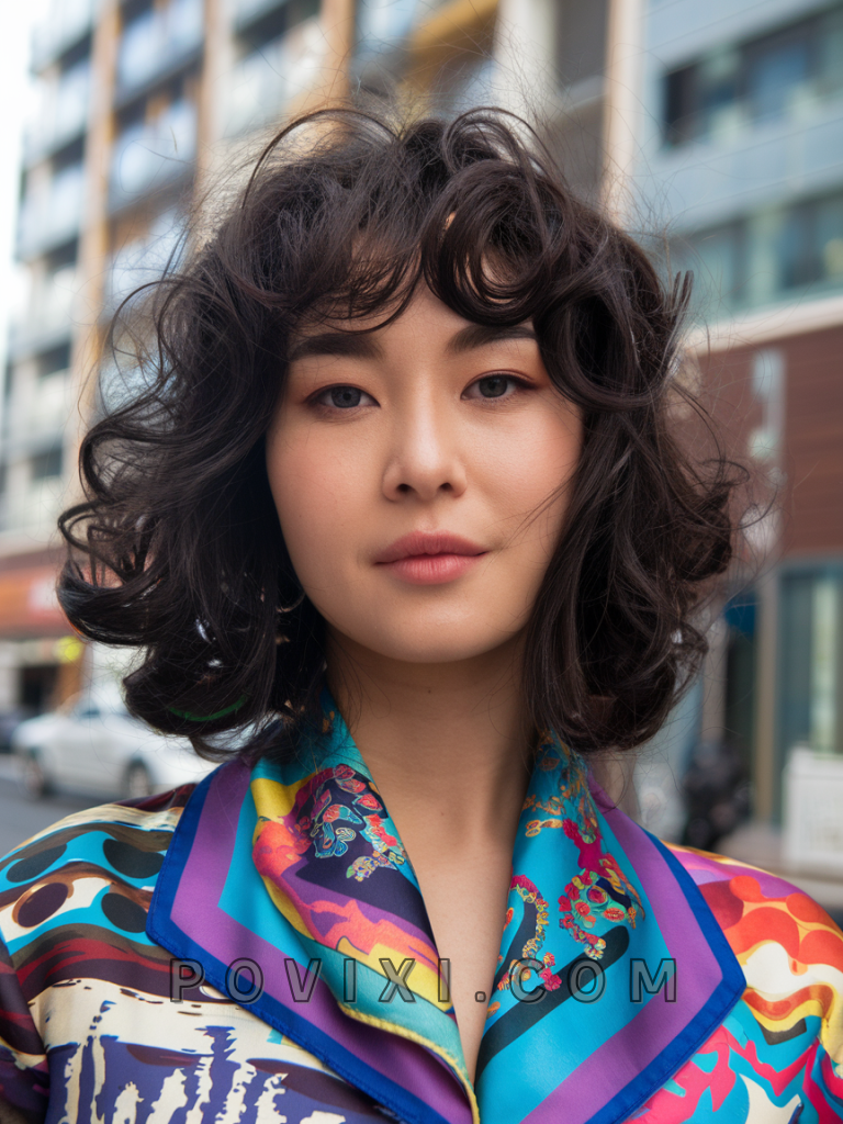 The Korean shag emphasizes soft curls and a youthful aesthetic. This modern variation pairs well with colorful accessories and trendy outfits, making it perfect for fashion-forward individuals. It’s ideal for oval faces and enhances natural curls with a layered effect.