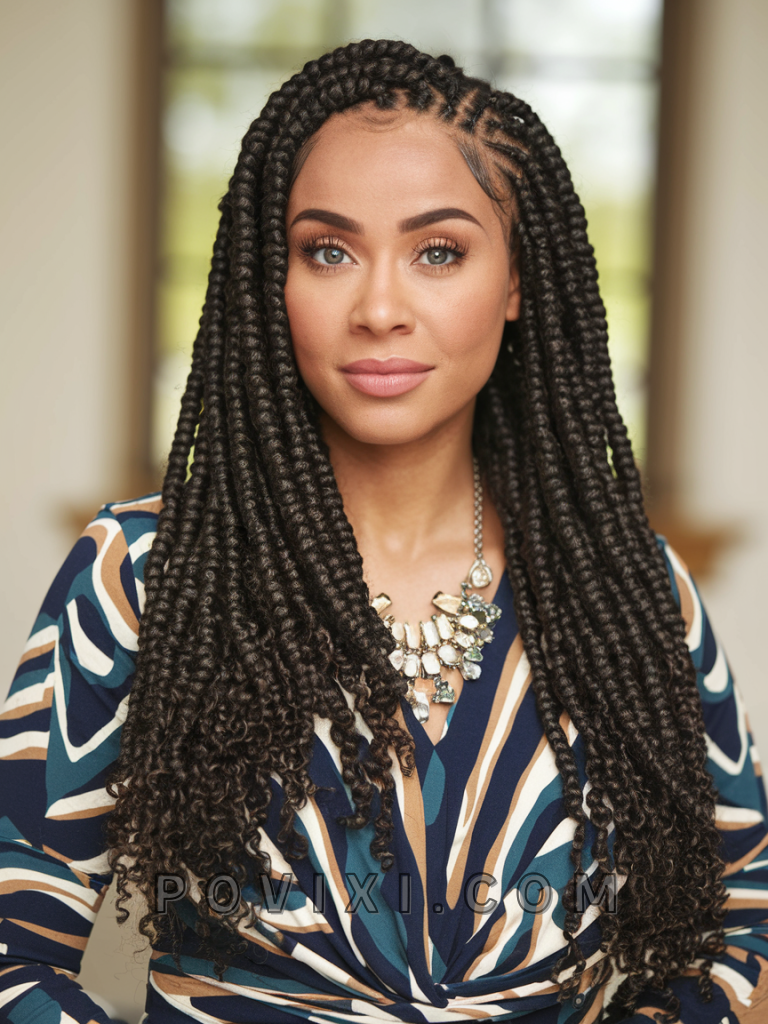 For a natural and seamless finish, knotless passion twists are the way to go. This technique eliminates the bulky knots at the base, offering a comfortable and realistic look. Perfect for professional settings or casual events, knotless twists suit any face shape and can be styled in various lengths.