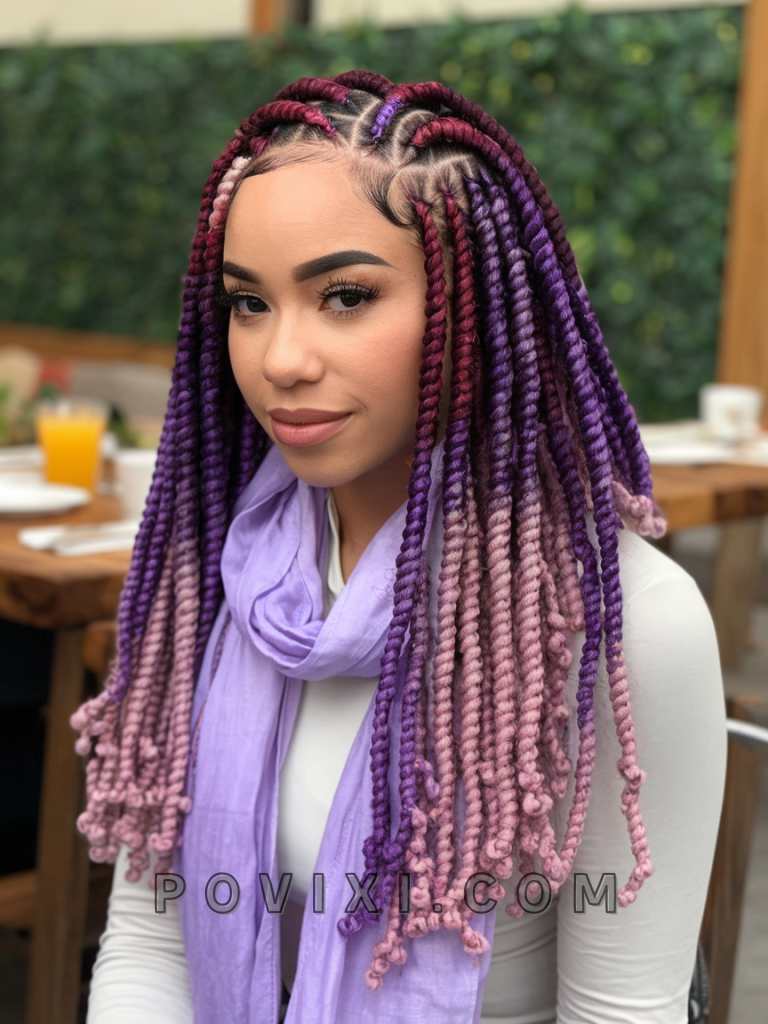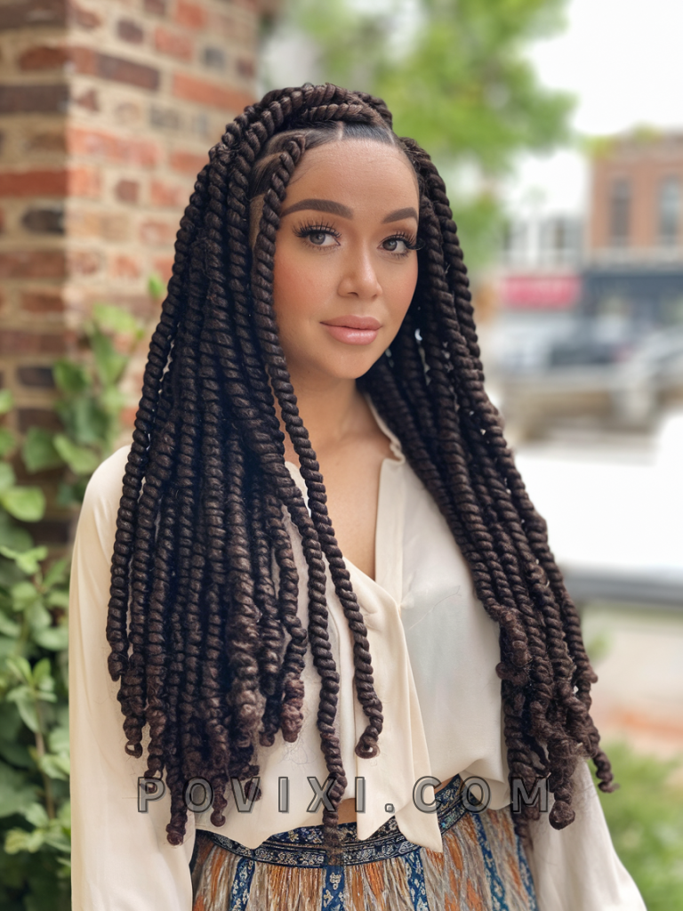Jumbo passion twists are bold and statement-making, perfect for those who love a voluminous and impactful style. These large twists add texture and drama, making them ideal for a night out or a creative photoshoot. Best suited for round and heart-shaped faces, they highlight facial features while offering a protective style.