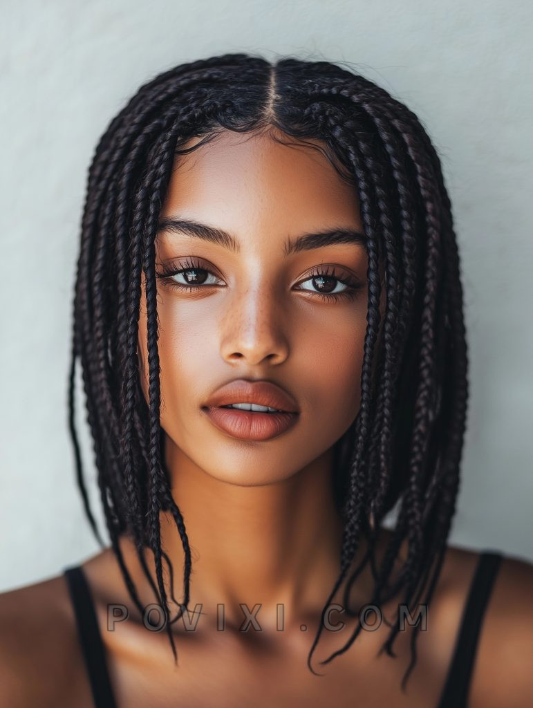 Short box braids are a quick and easy way to protect your natural hair while maintaining a chic appearance. This style involves braiding the hair close to the scalp, with the ends left loose for a playful and versatile look. It’s ideal for those who want a low-maintenance style that can be dressed up or down for any occasion. Short box braids are perfect for oval or heart-shaped faces and bring out the natural beauty of brown or hazel eyes.