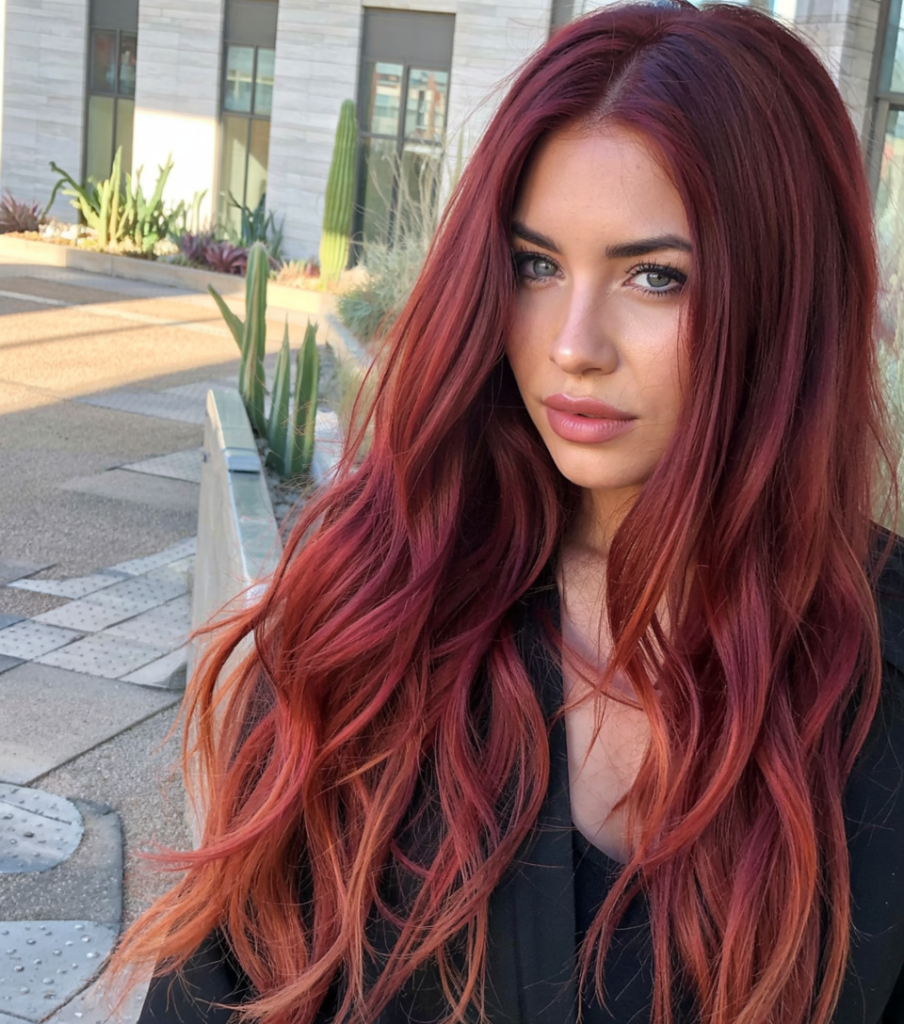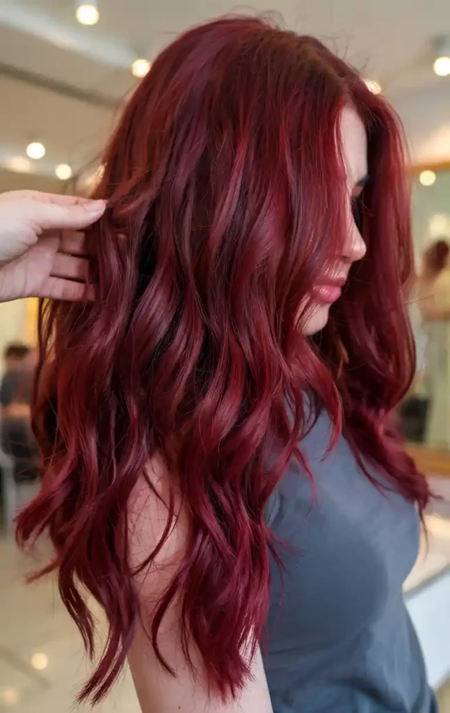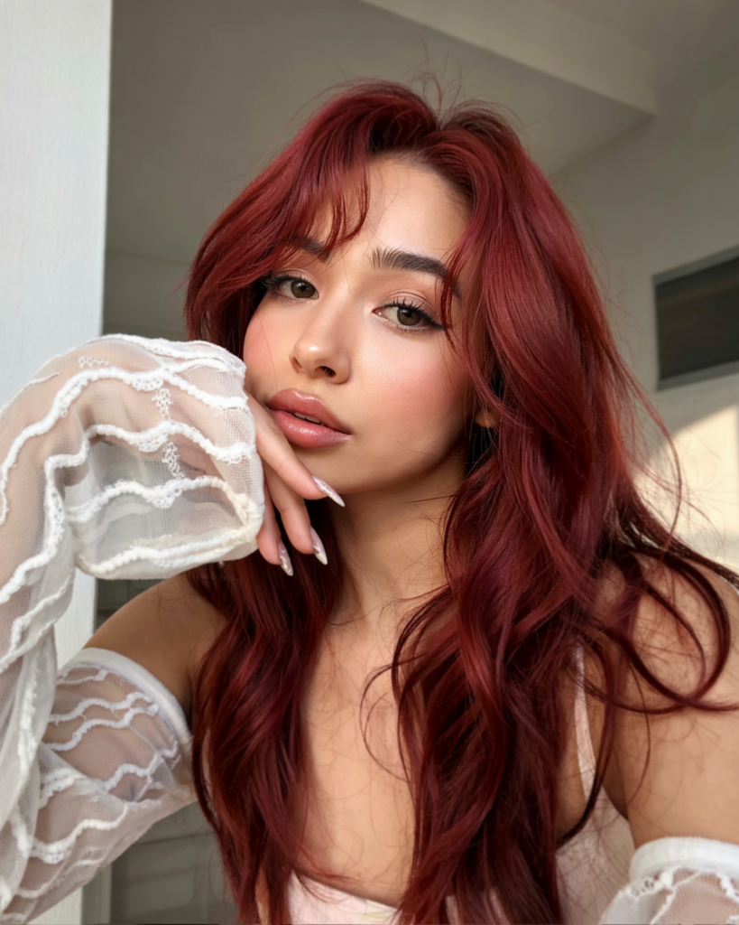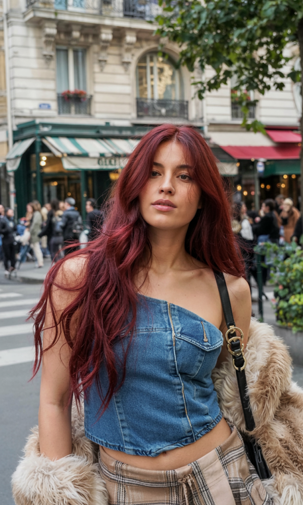 This flowing red catches light in the dreamiest way. It’s not just a color — it’s a mood. Carefree, a little rebellious, and very alive. It is deep, not dull, and you hear the echo of copper and wine, and these flicker along as you go. And pretend that it is your daily dose of confidences in spite of hair form.
