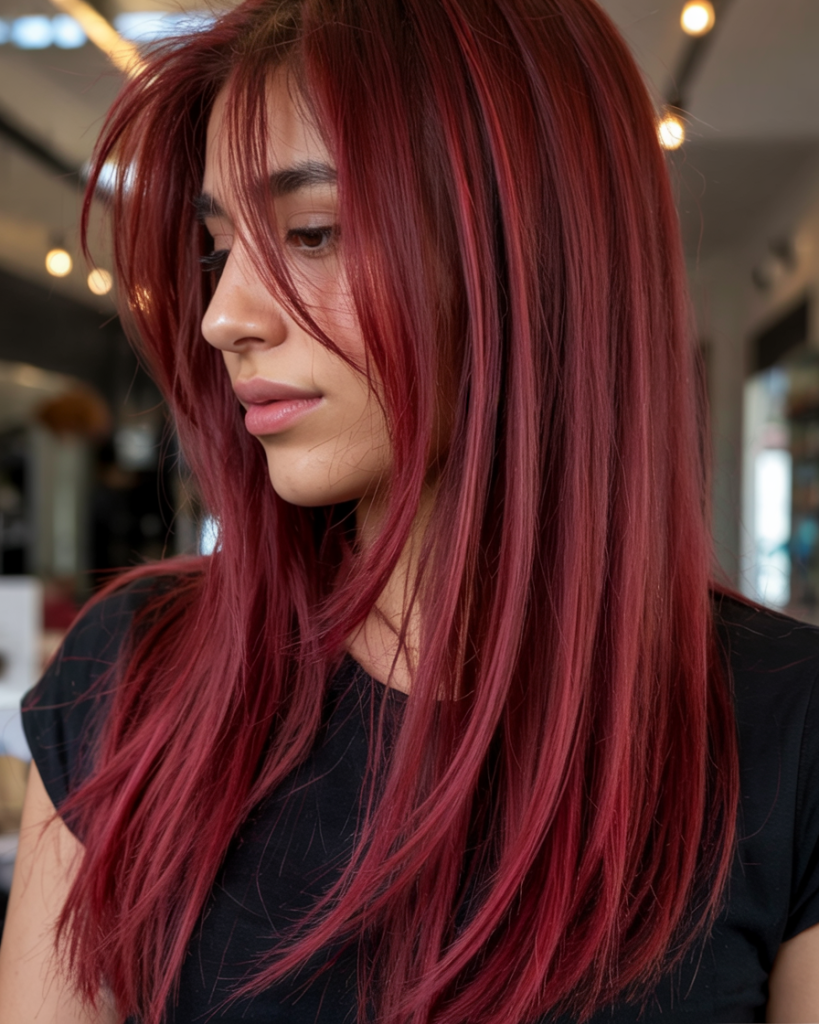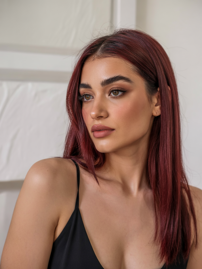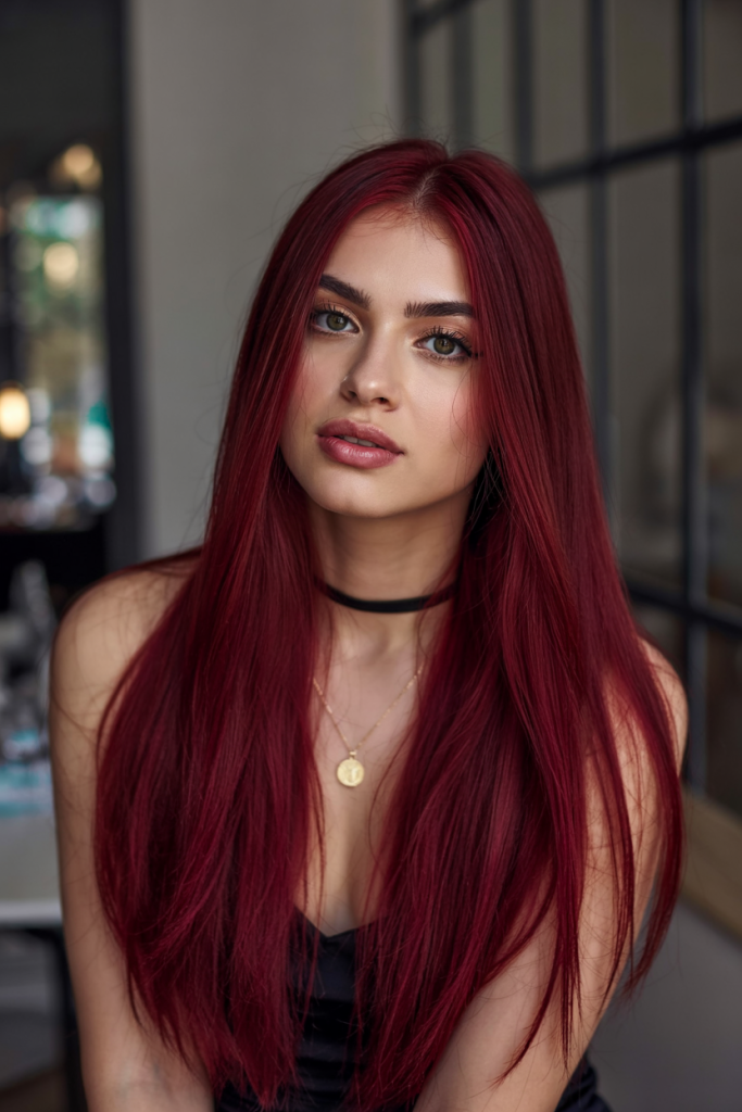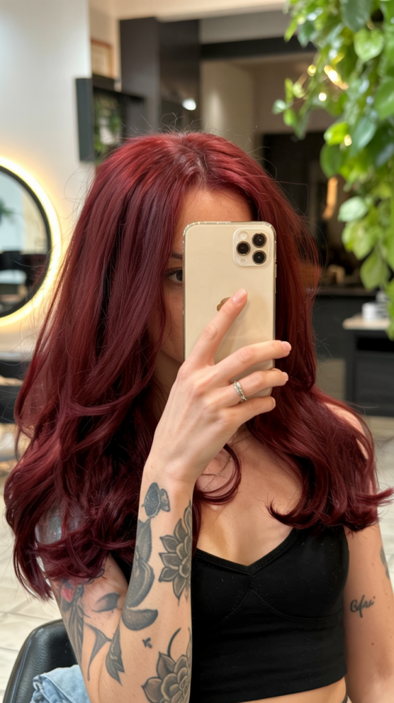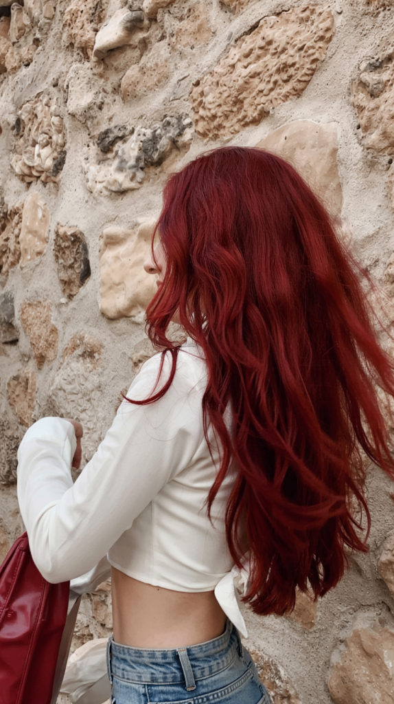 This flowing red catches light in the dreamiest way. It’s not just a color — it’s a mood. Carefree, a little rebellious, and very alive. It is deep, not dull, and you hear the echo of copper and wine, and these flicker along as you go. And pretend that it is your daily dose of confidences in spite of hair form.