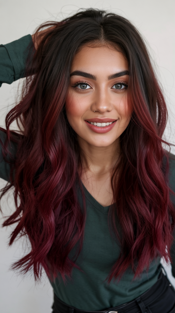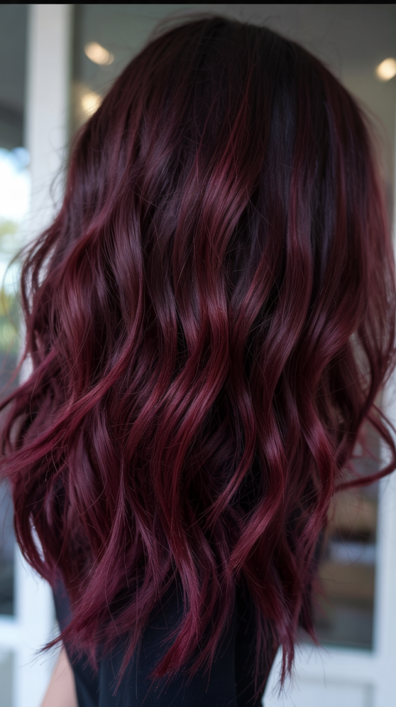 It is ideal on hair that is thick with waves or curls that take the shape. To bring sustained life into the shine, request dark copper or plum gloss at your stylist about every 3-4 weeks. It works best with the ladies that have experimented with red in the past, and are in need of a moodier color to fill in in 2025, particularly, when you like your appearance with a bit of an attitude.
