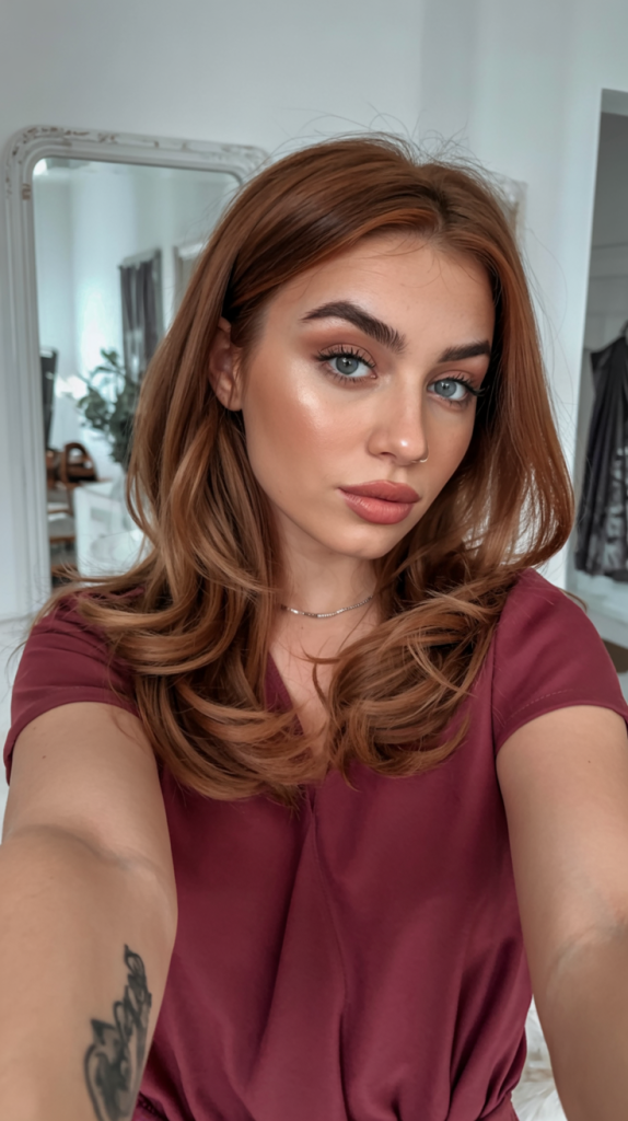 This color is not even loud and this is what makes it chic. This gentle cinnamon blowout feels both timeless and modern at the same time and this is the kind of hairstyle that makes people wonder whether it is your natural color or not (and we all know how much we all love to hear that). It radiates softness and polish in a single glance.
