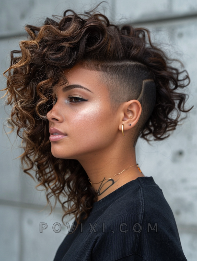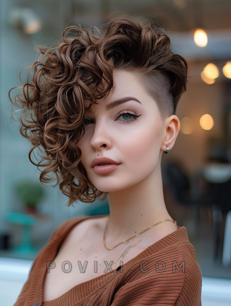 The undercut bob with feathered layers is a soft, feminine style that adds texture and volume. The undercut provides an edgy contrast to the feathered, layered top. This style is perfect for women with curly hair as it enhances natural curls while adding a modern twist. Best suited for those with oval or heart-shaped faces, it’s ideal for everyday wear and special occasions.