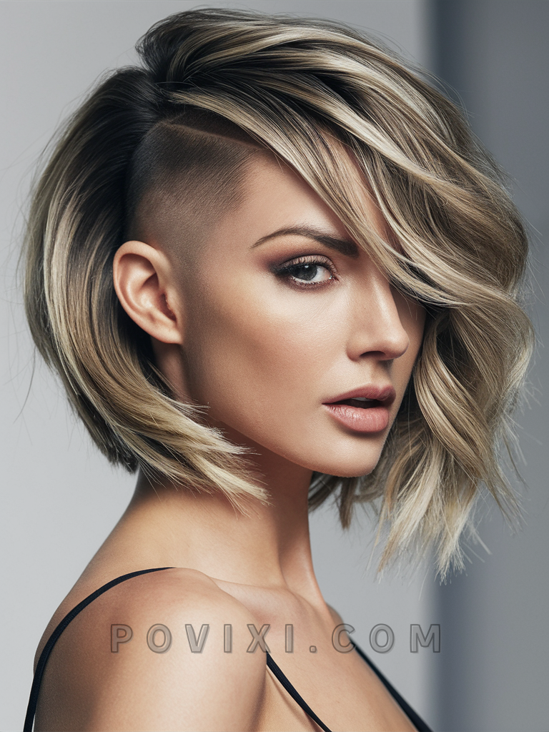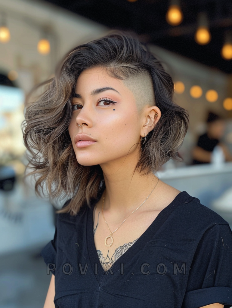 A wavy bob with a side part and undercut offers a sophisticated yet trendy look. The side part adds elegance, while the undercut adds an element of surprise. This style works well with wavy hair and suits all face shapes, particularly those with prominent cheekbones. Ideal for both professional and casual settings, this bob is versatile and stylish.