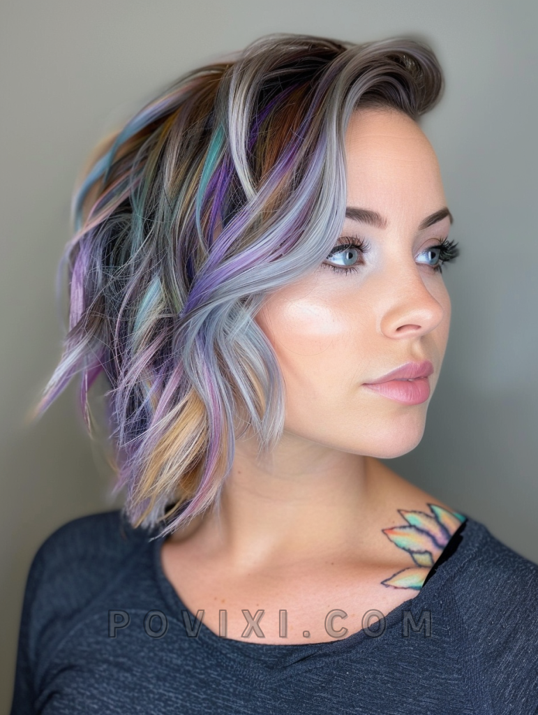 The bob with side shave and color streaks is a modern and edgy style that adds a pop of color to a sleek bob. The side shave provides an element of surprise, while the color streaks add vibrancy. This style suits those with straight hair and angular face shapes. It’s perfect for making a statement at high-fashion events or nights out.