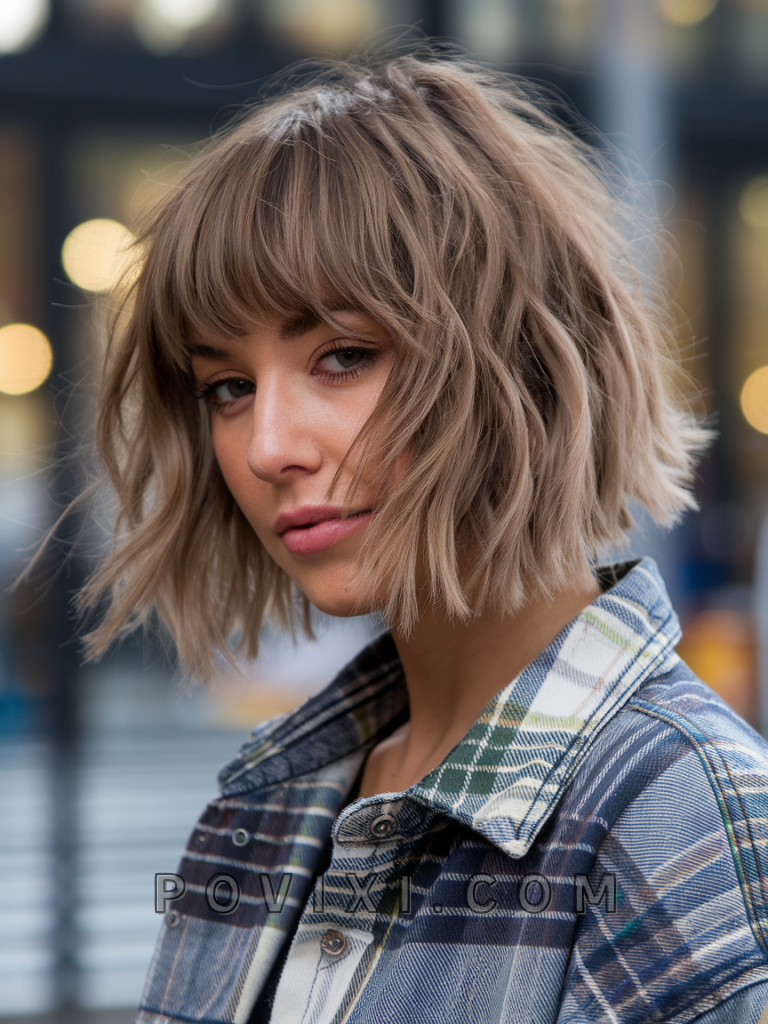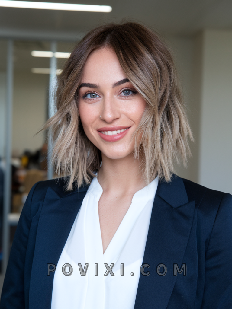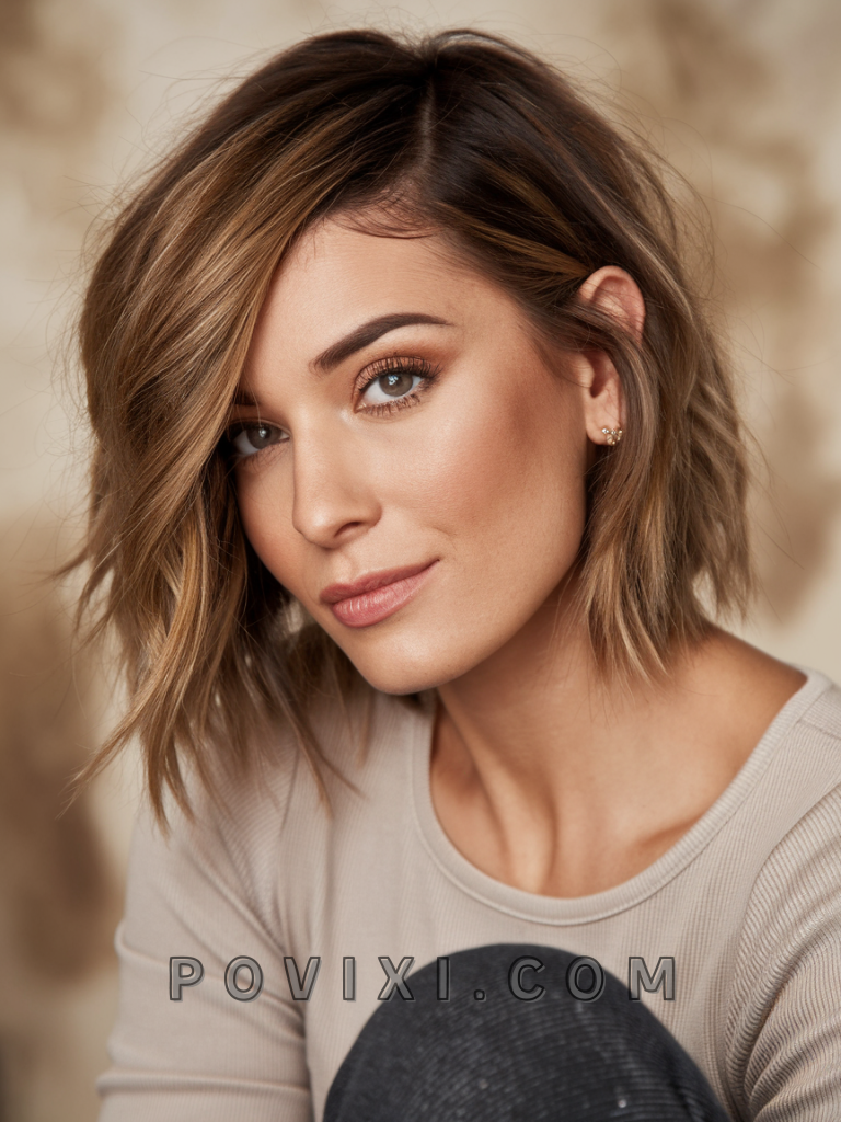 The textured layered bob is a contemporary twist on a classic bob, featuring jagged layers for a lived-in, tousled look. It’s ideal for thin hair, as the texture adds volume, and works beautifully for round faces or shoulder length thick hair. This hairstyle is perfect for casual outings or professional settings, offering both versatility and style.