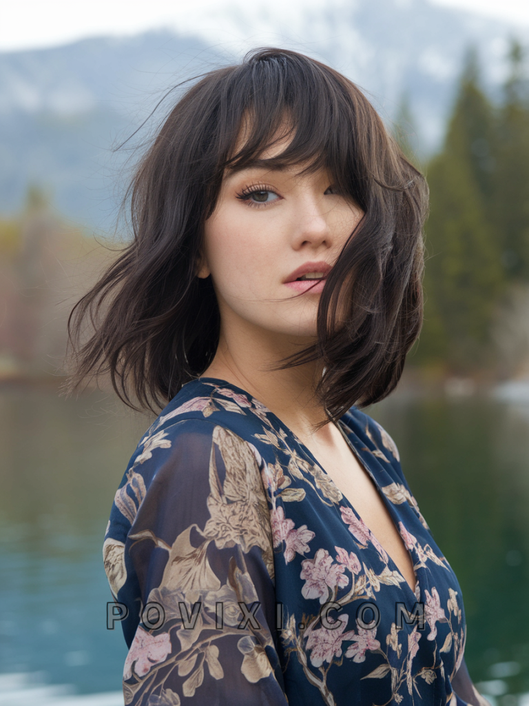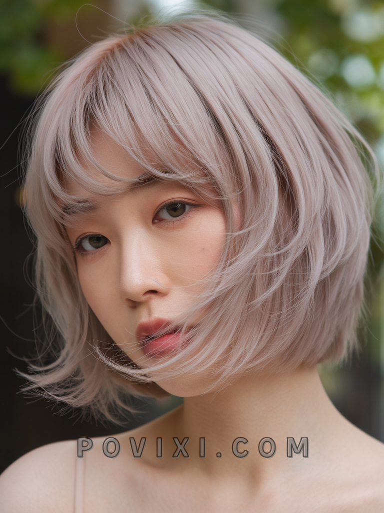 The Japanese bob with wispy layers is a minimalist yet impactful haircut. Best suited for medium hair, this style flatters round faces and creates a soft, ethereal look. It’s perfect for everyday wear or special events, blending effortlessly with both casual and formal attire.