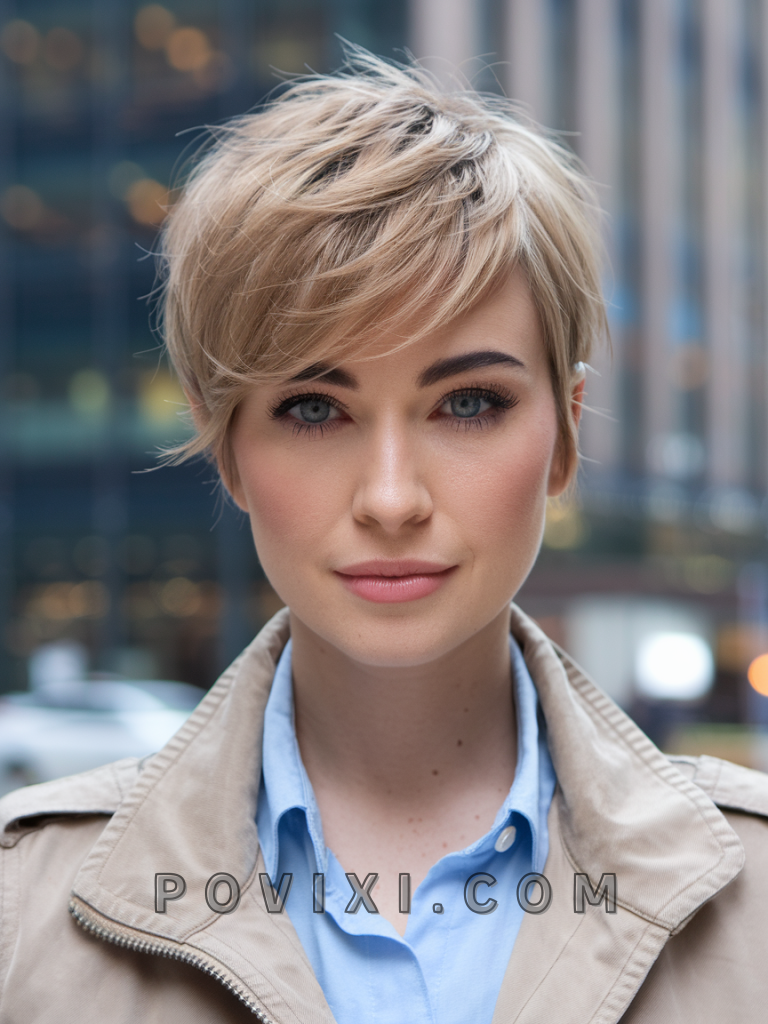 To achieve this look, a stylist trims the hair close to the head, leaving the top layers slightly longer for added texture. A lightweight texturizing spray such as Bumble and Bumble’s Dry Spun Texture Spray can amplify the layered effect. Regular trims every 4–6 weeks keep the style polished and fresh.