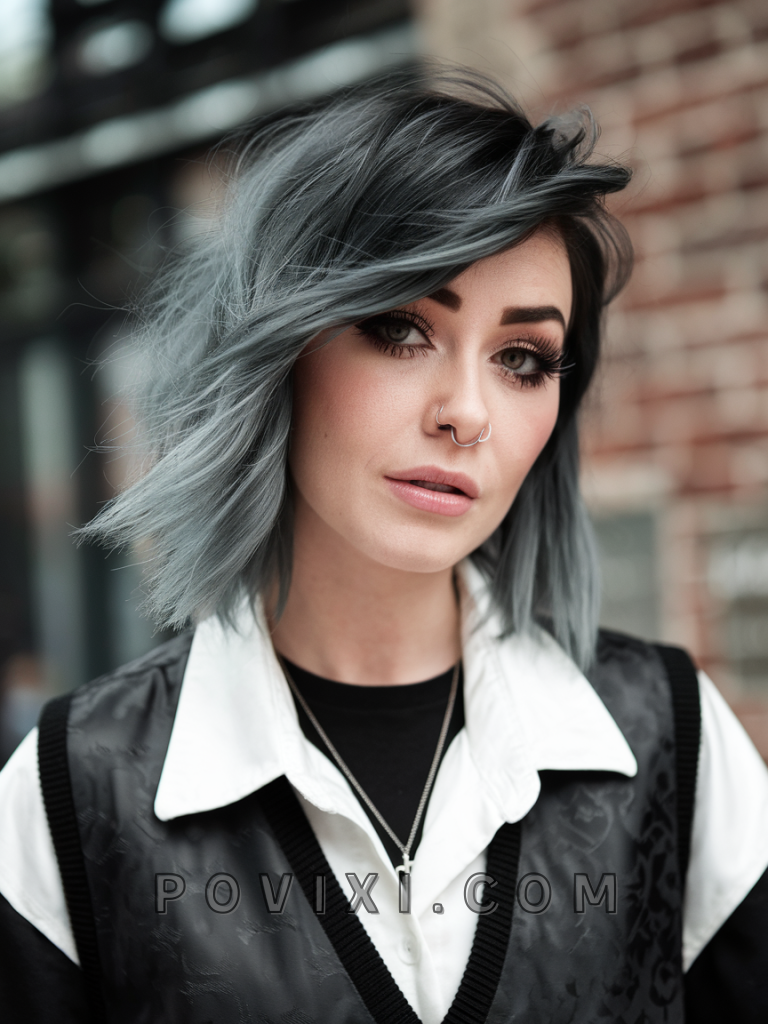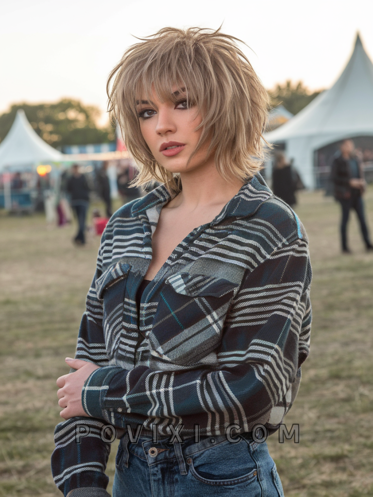The grunge-inspired shag is a throwback to the 90s with a modern update. This edgy hairstyle is perfect for baddie and emo aesthetics, featuring jagged layers and curtain bangs. It flatters thin hair and adds an effortless vibe to any look, whether you’re heading to a music festival or a casual outing.