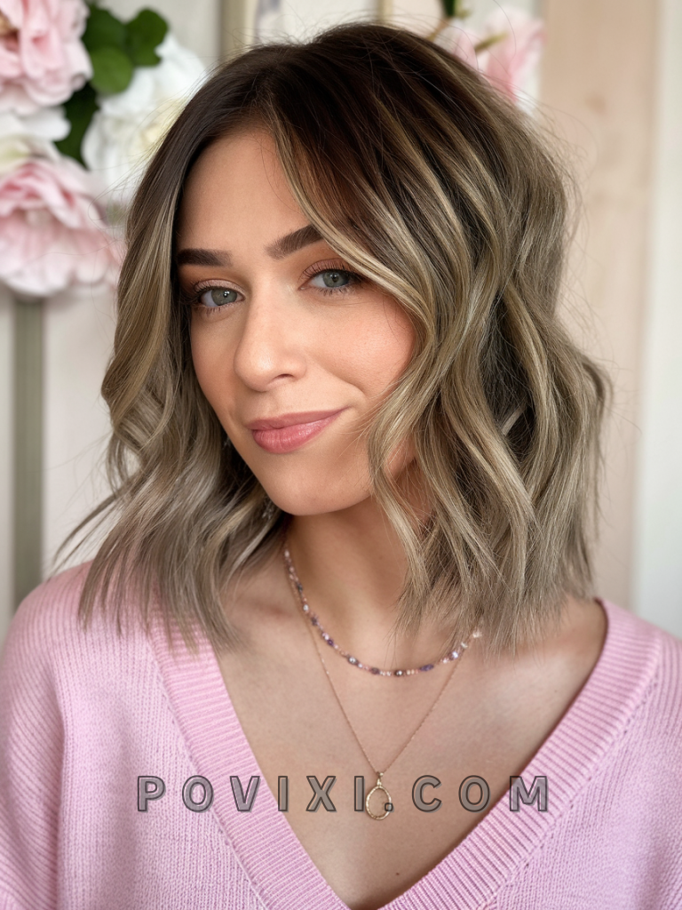 The soft bangs frame the face beautifully, enhancing cheekbones and drawing attention to the eyes, while the waves add a carefree touch. Adding balayage for brunettes elevates the style, making it a trendy choice for spring.