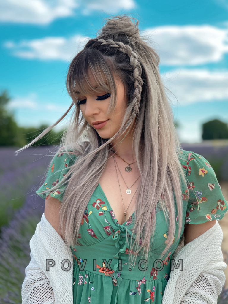 Long layers paired with a small braided accent create a unique and artistic hairstyle. It’s ideal for music festivals, spring fairs, or casual dates. This style complements heart-shaped and oval faces and enhances the natural beauty of brunette balayage.