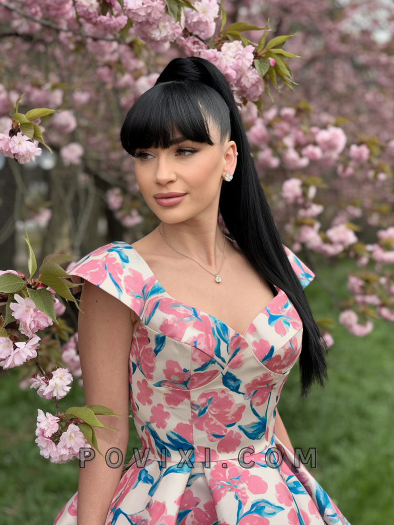 A sleek high ponytail paired with bangs is a bold and modern choice. This look is ideal for workout sessions, business meetings, or chic evening events. The bangs add an edgy touch while balancing the overall style. It works best for oval and heart-shaped faces and is stunning on dark brunette hair.