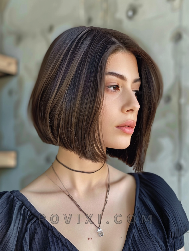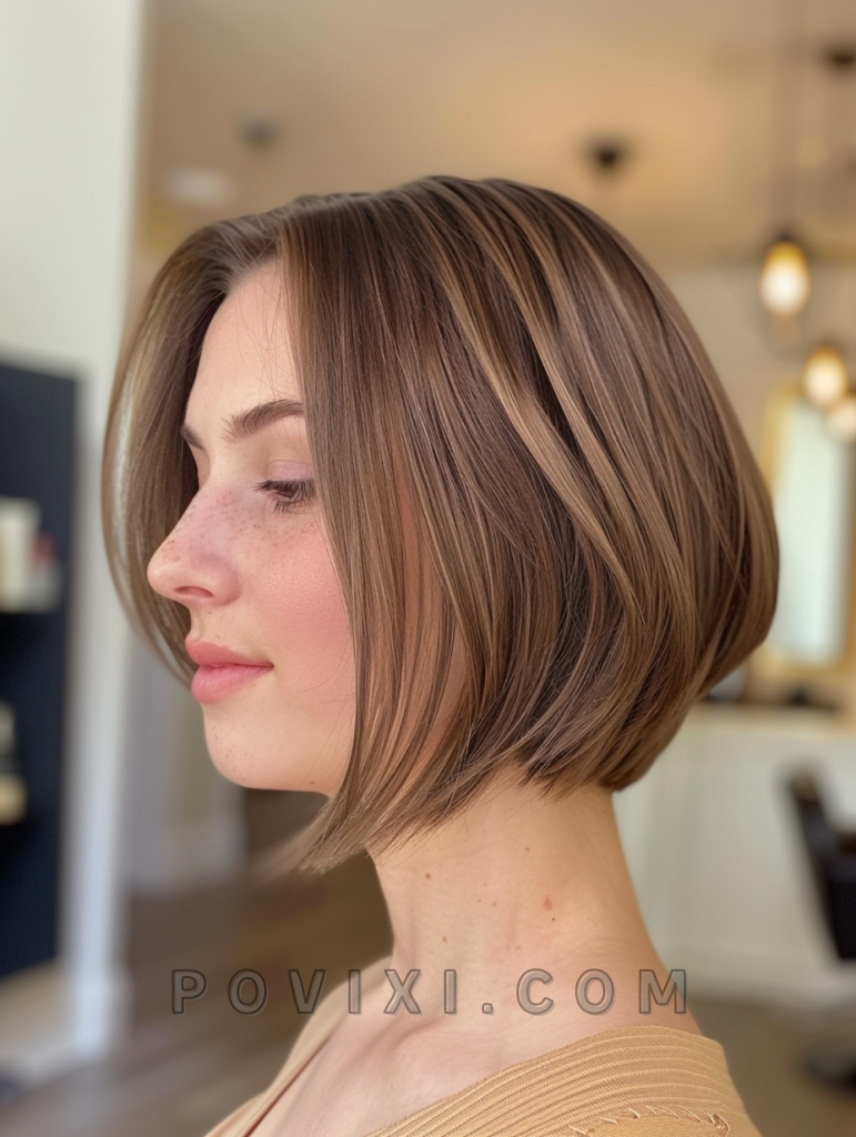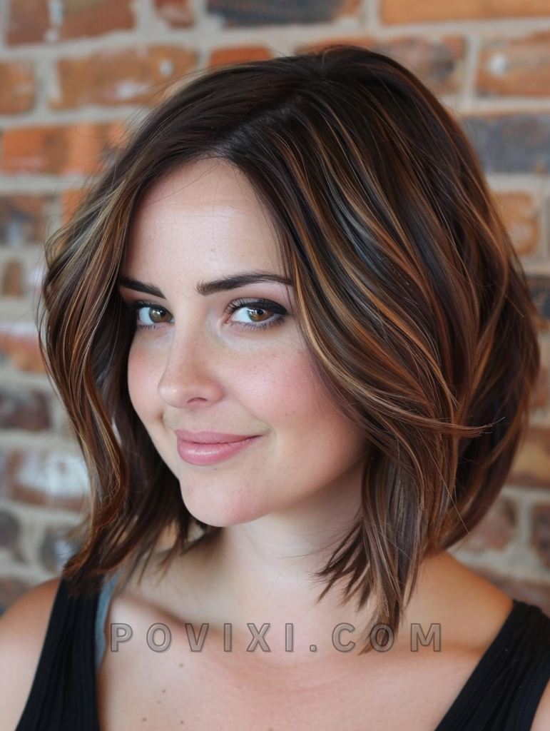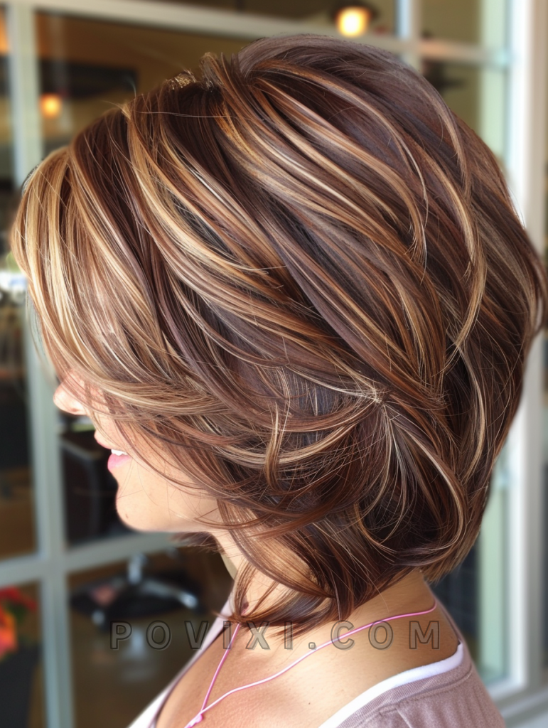Adding highlights to a stacked bob can bring dimension and a sun-kissed effect to your hairstyle. This look is perfect for those who want to add some brightness and contrast to their hair. Suitable for all face shapes and hair types, highlights can enhance the layered effect of the stacked bob, making it more dynamic and vibrant.