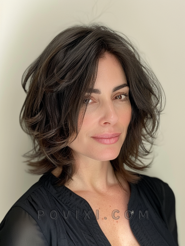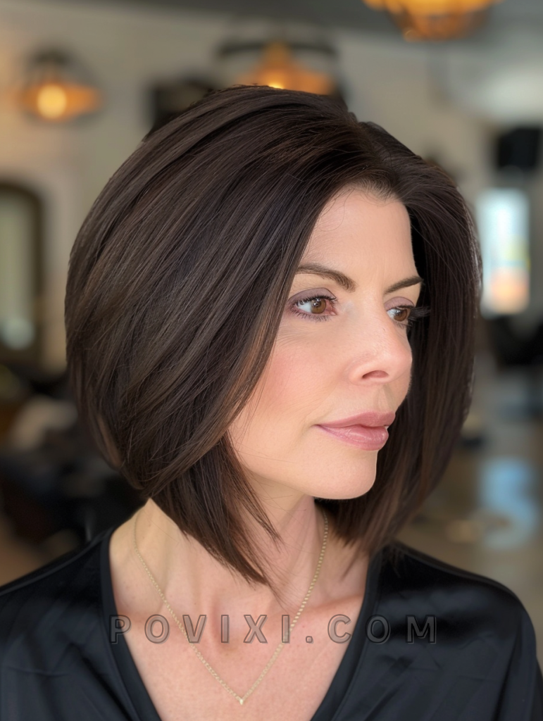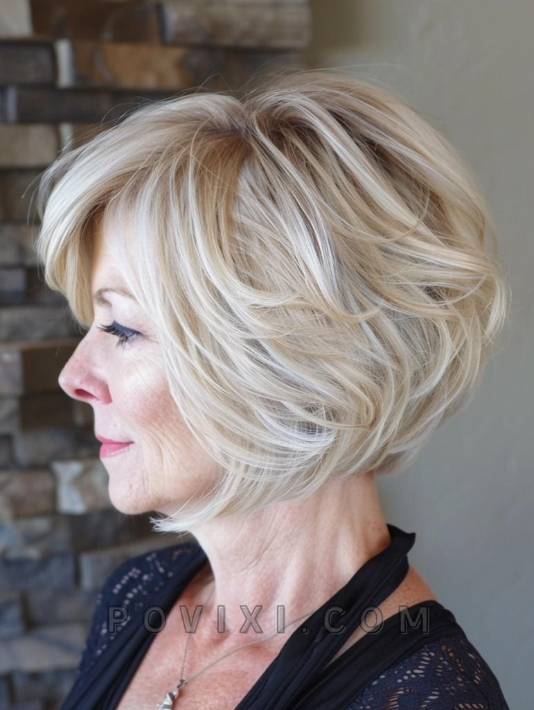 The stacked bob for women over 50 is a sophisticated and elegant choice that adds a youthful touch to mature women. This style incorporates soft layers and subtle volume, making it perfect for thinning hair. It suits all face shapes and can be styled to look both casual and refined.