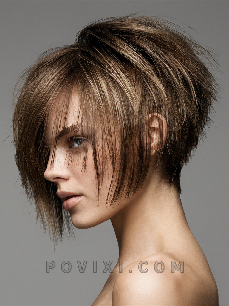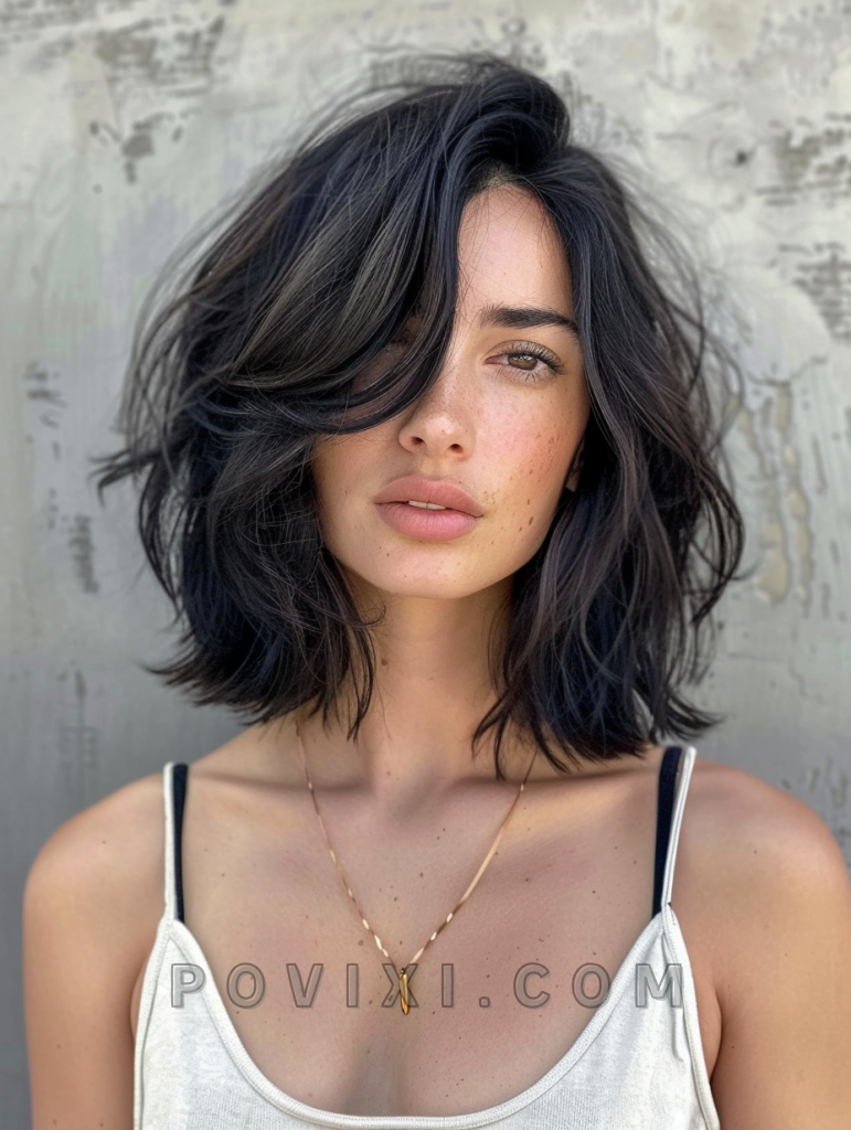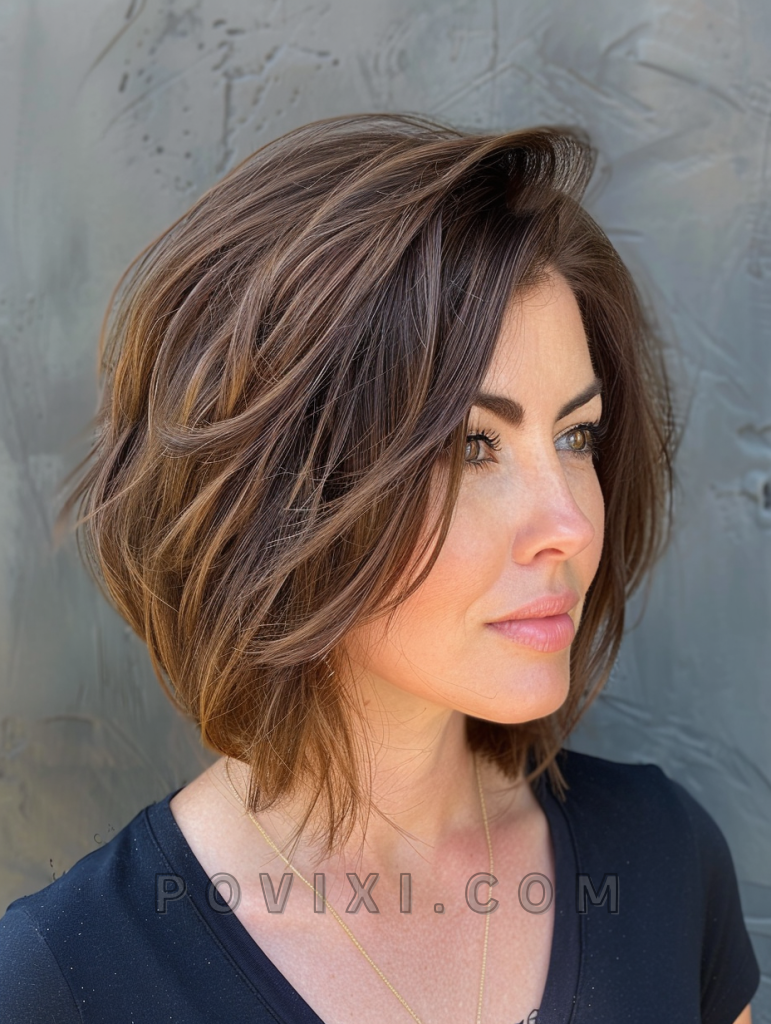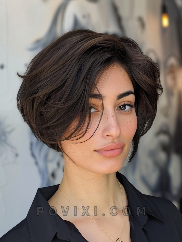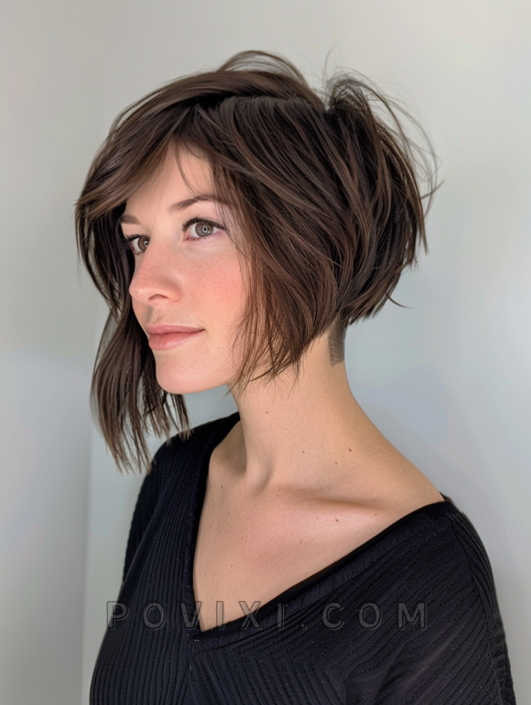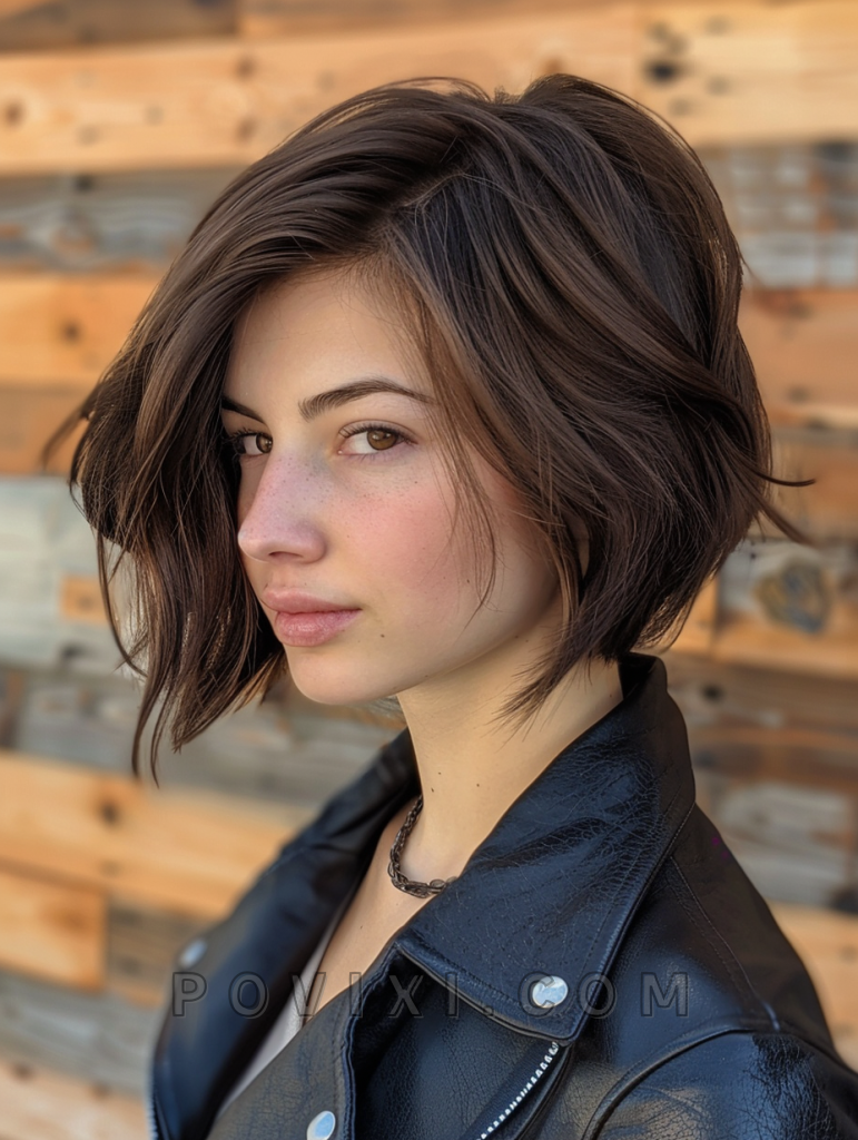 The layered stacked bob adds extra texture and dimension to the classic bob cut. This style incorporates multiple layers throughout the hair, giving it a fuller and more dynamic look. It’s particularly beneficial for those with fine hair who want to add volume and depth. This cut suits all face shapes and is a versatile choice for any occasion.