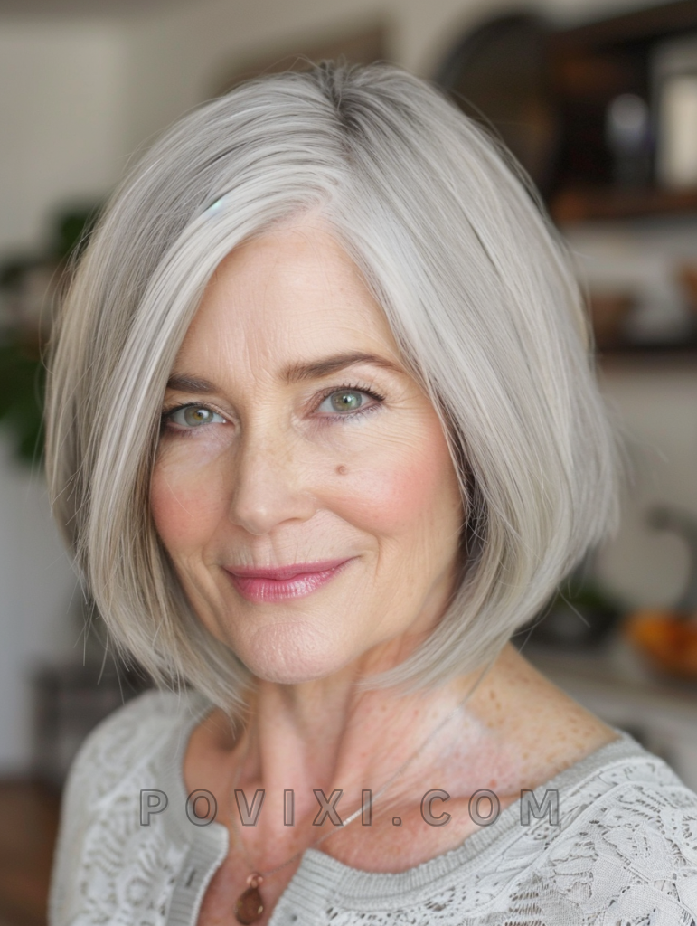 To achieve a gray stacked bob, your stylist will cut the hair in graduated layers that enhance the natural gray color. A silver-specific shampoo, like Matrix Total Results So Silver, is essential to maintain the vibrancy of the gray and prevent yellowing. Regular trims will keep the shape defined and the layers looking fresh.