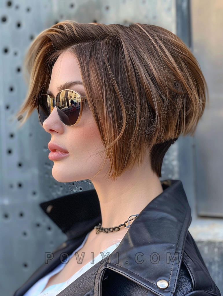The stacked bob with an undercut is a bold and edgy style that combines the classic bob with a modern twist. The undercut involves shaving or cutting the hair very short on one side or at the nape, creating a stark contrast with the longer layers. This look is great for those who want to add a bit of rebellion to their hairstyle.
