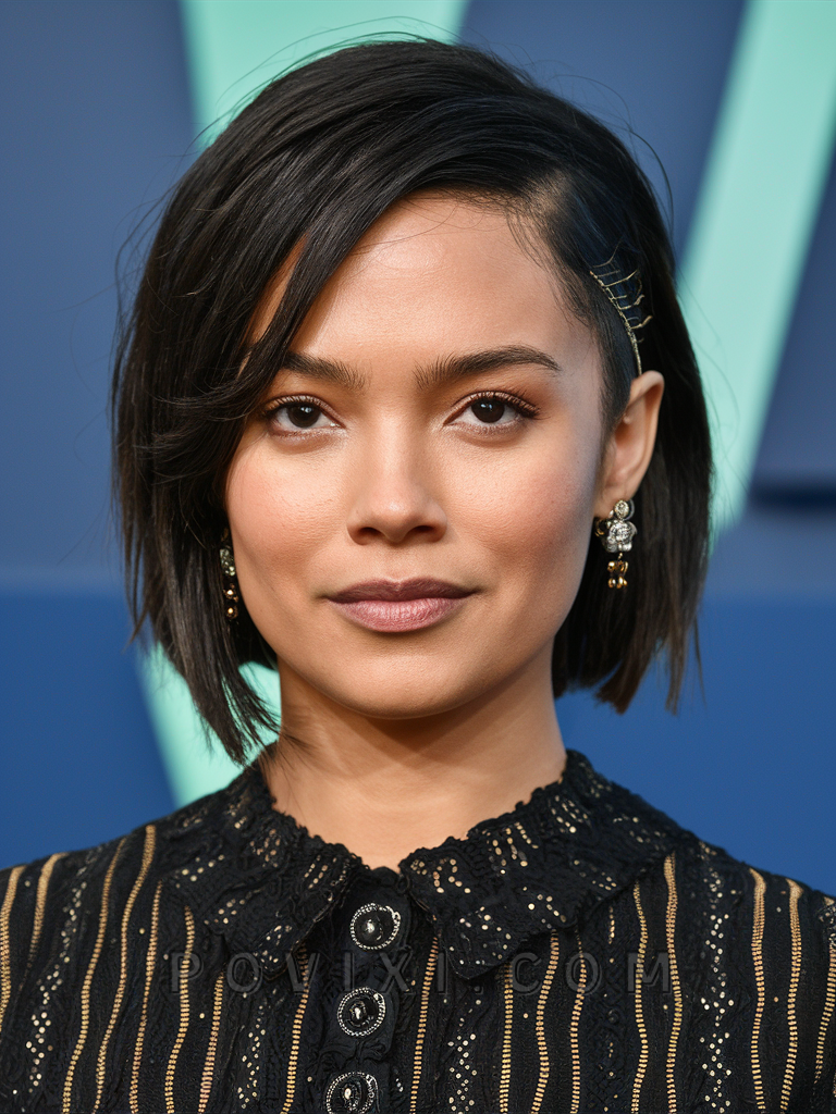 To create this look, your stylist will cut your hair into a stacked bob and then style it with a deep side part. Use a volumizing mousse and a round brush to blow-dry, focusing on creating lift at the roots. Regular trims and using a lightweight conditioner will help maintain the style and keep your hair looking healthy.