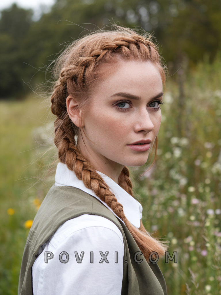 The braided crown with peekaboo highlights combines elegance and playfulness, making it ideal for proms or outdoor events. This style flatters oval faces and highlights blue and green eyes with its dynamic pops of color.