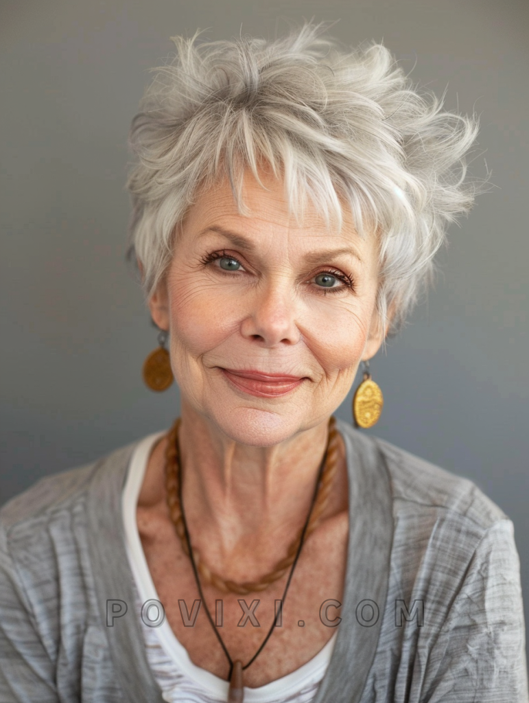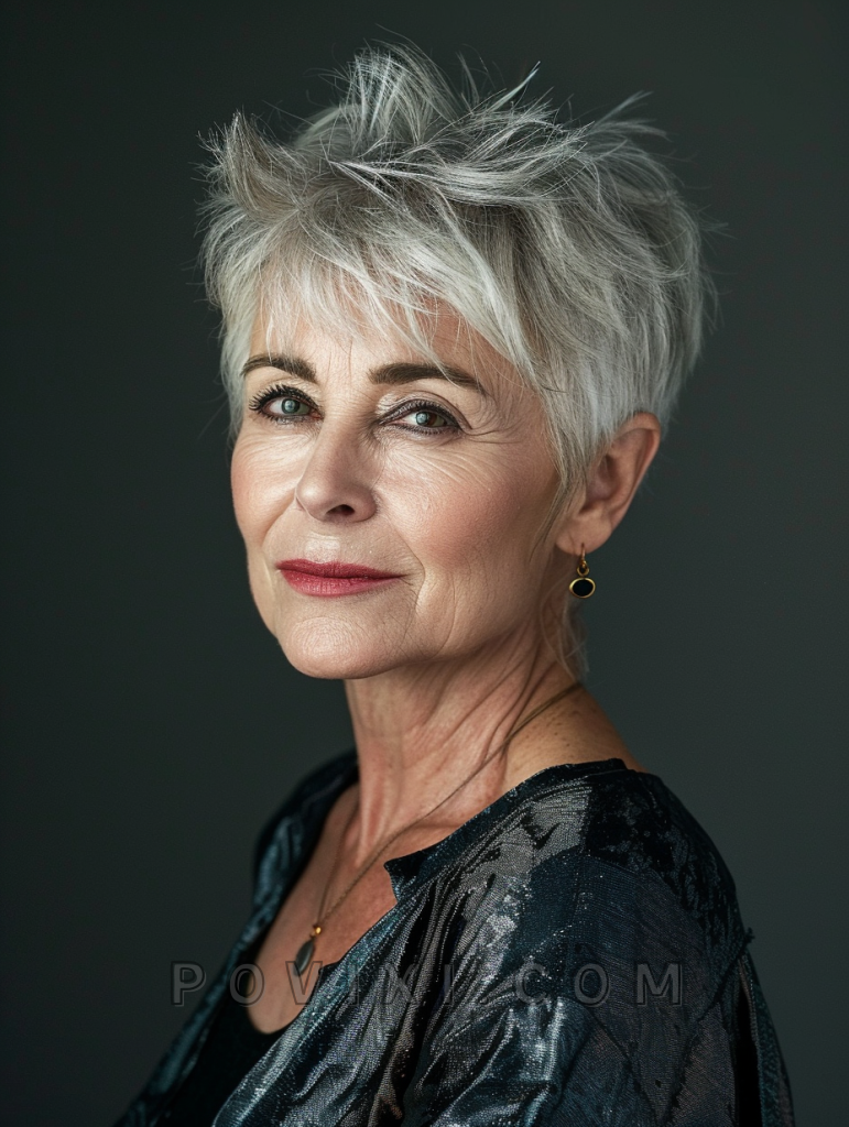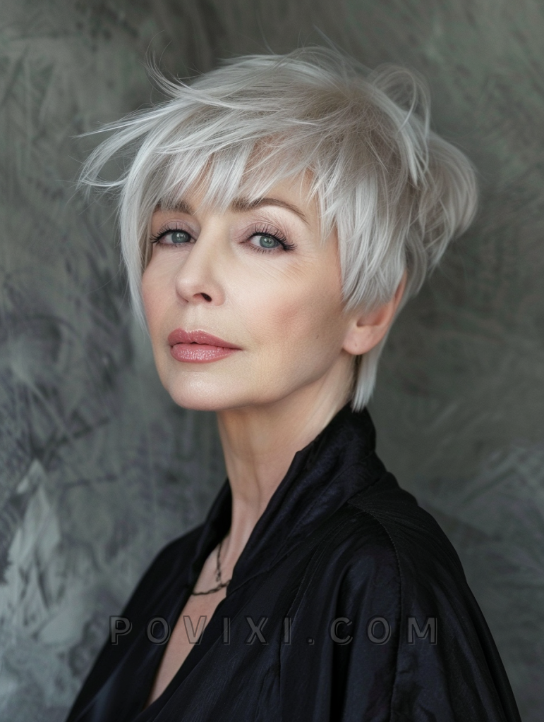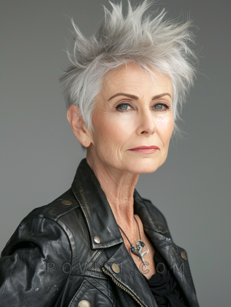The spiky pixie is a bold and funky hairstyle that adds a touch of edge to your look. This cut features short, spiky layers that create a playful and modern appearance. It’s ideal for older women with thick hair and those who want to make a statement.