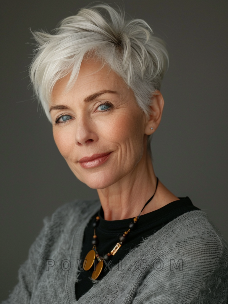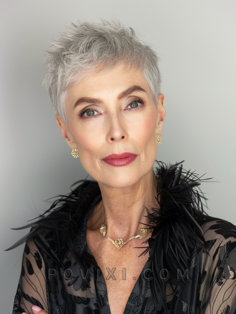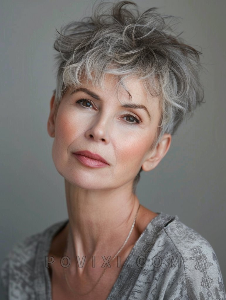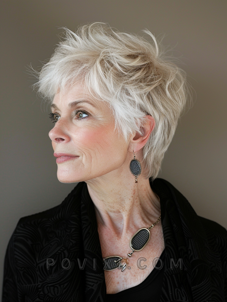 The spiky pixie is a bold and funky hairstyle that adds a touch of edge to your look. This cut features short, spiky layers that create a playful and modern appearance. It’s ideal for older women with thick hair and those who want to make a statement.