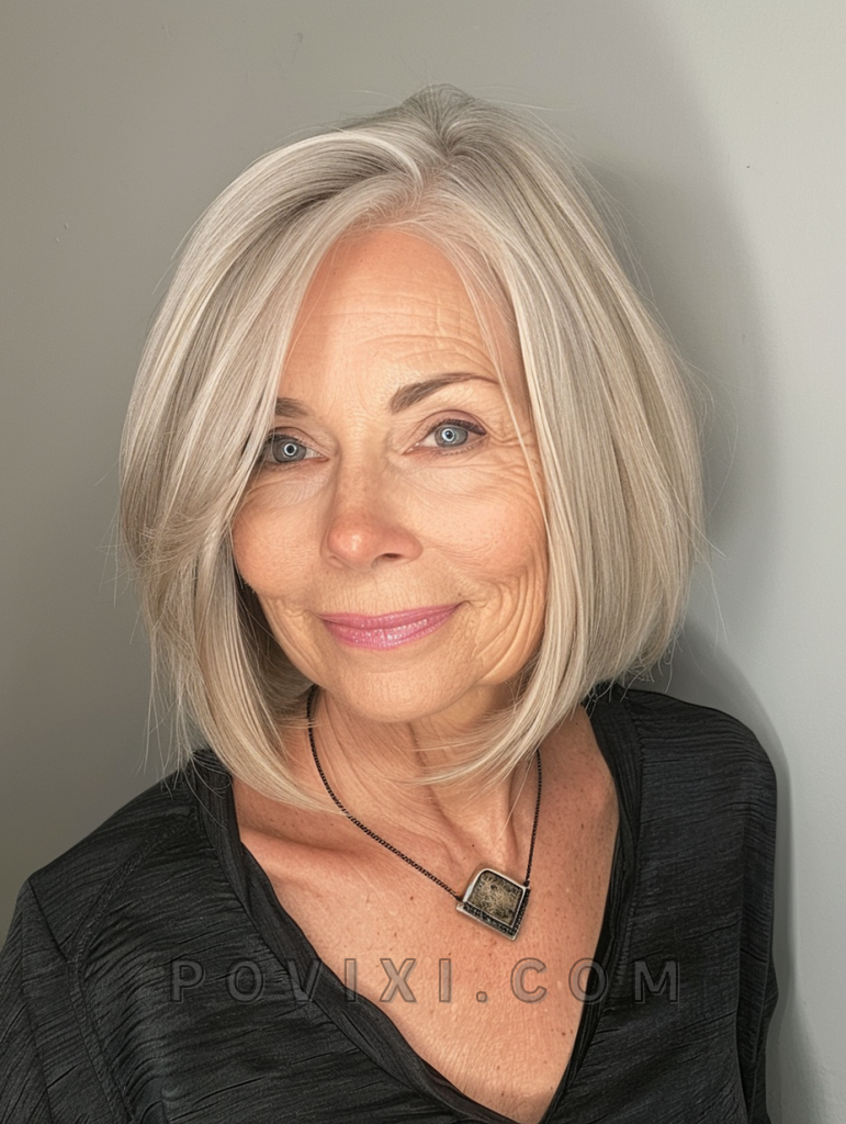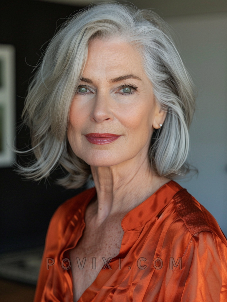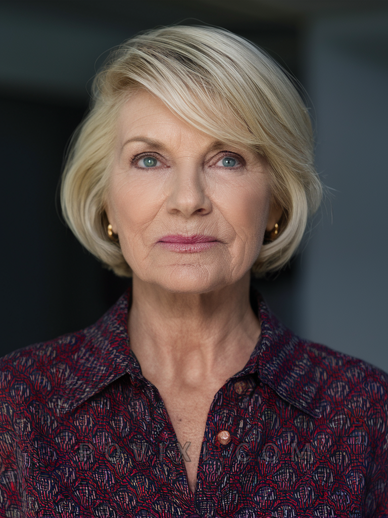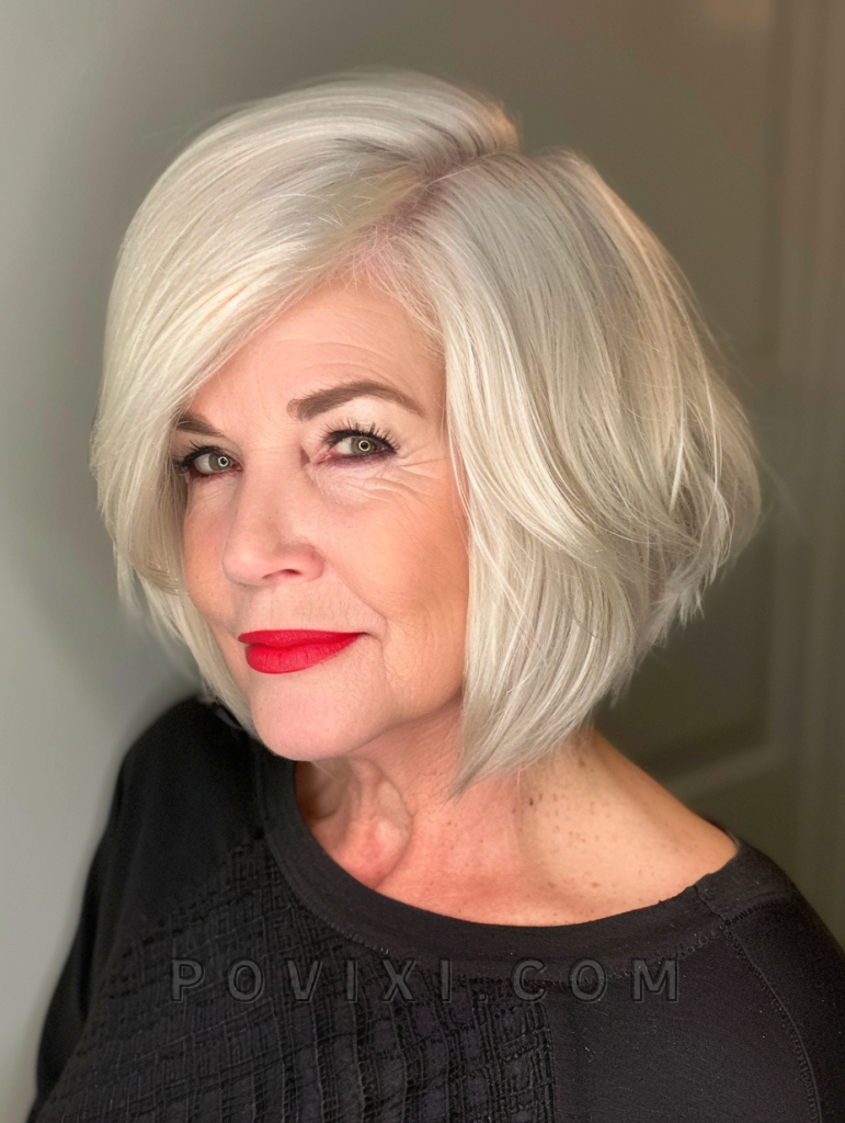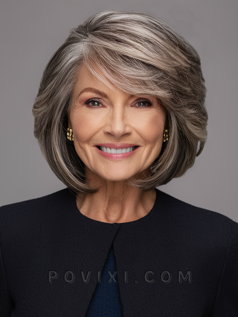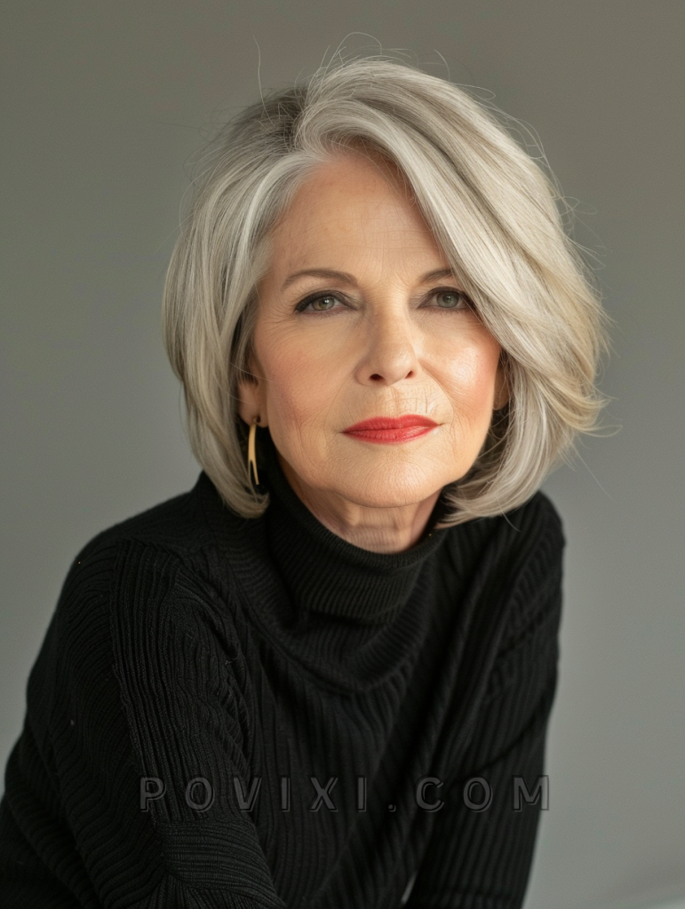 The classic bob is an elegant and sophisticated choice for older women. This hairstyle features hair cut to a uniform length, usually at the jawline or slightly below. The classic bob accentuates the neck and jawline, making it a flattering option for women with round faces or those wearing glasses. This cut is perfect for both casual and formal settings, and its simplicity makes it a timeless favorite.