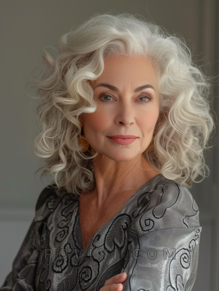 Voluminous curls offer a glamorous and youthful look for older women. This hairstyle features soft, bouncy curls that add volume and movement to your hair. Voluminous curls are perfect for women with thick hair and those who wear glasses, as the curls frame the face beautifully. This style is ideal for special occasions and adds a touch of elegance to any outfit.