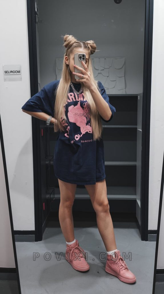 Sporty Chic in Oversized Graphic Tee and Sneakers