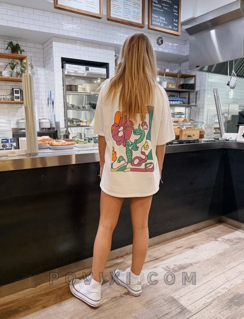 Nothing beats a floral oversized tee and white sneakers for a relaxed coffee run or brunch with friends. This outfit is ideal for spring, embracing soft, pastel tones with a playful edge. Style it with minimal accessories and let the bold graphic do the talking. For an even more aesthetic look, you can tuck in part of the tee and pair it with high-waisted shorts. This adds a bit of structure while keeping the relaxed vibe intact. A small tote bag or a baseball cap would be great additions to complete the look.