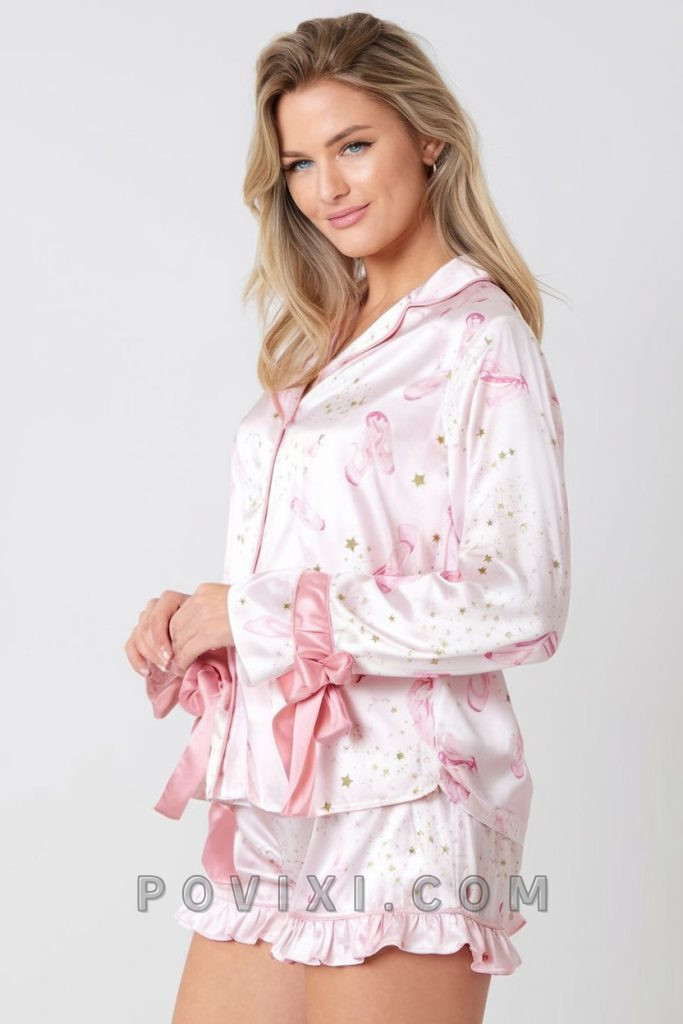 Lazy days don’t have to be frumpy—this pink satin pajama set proves that elegance and comfort go hand in hand. The silky fabric and feminine bows make it an effortlessly aesthetic choice for home. Ideal for self-care nights, this look is luxurious without compromising comfort. Pair with fluffy slippers and a satin headband for the ultimate bedtime glam.