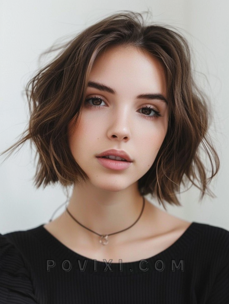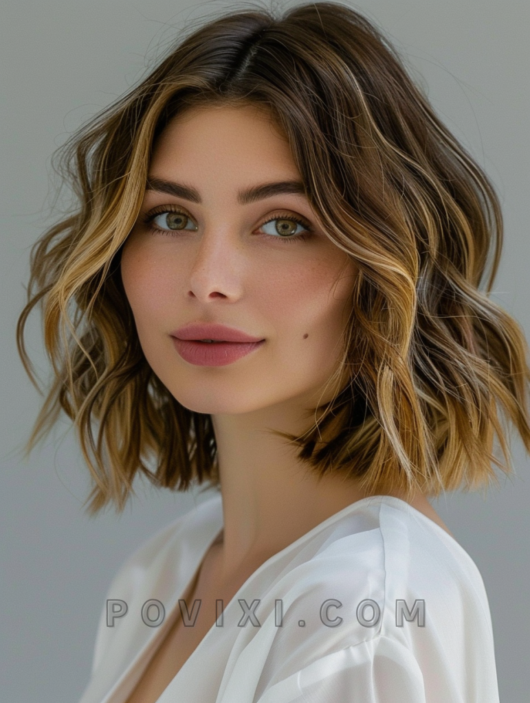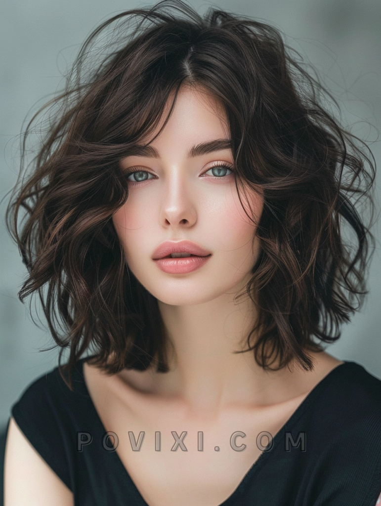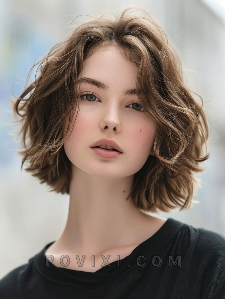 A chin-length tousled bob is perfect for wavy hair, offering a chic and effortless look. This style is incredibly flattering for petite face shapes and those who prefer a low-maintenance yet fashionable hairstyle.