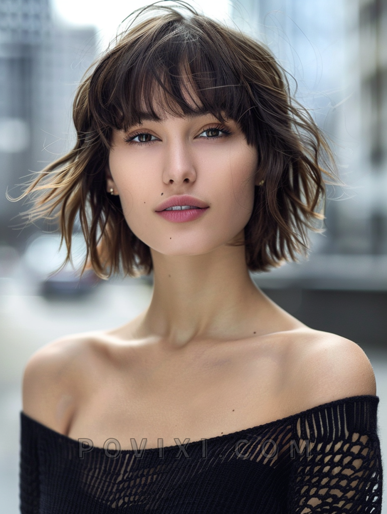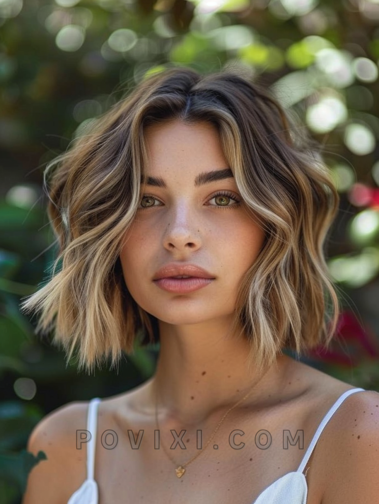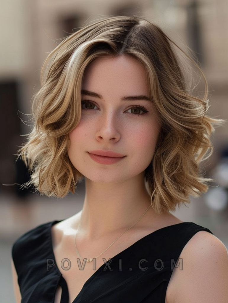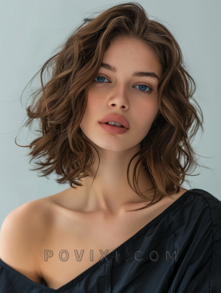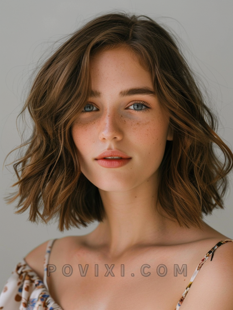 A chin-length tousled bob is perfect for wavy hair, offering a chic and effortless look. This style is incredibly flattering for petite face shapes and those who prefer a low-maintenance yet fashionable hairstyle.
