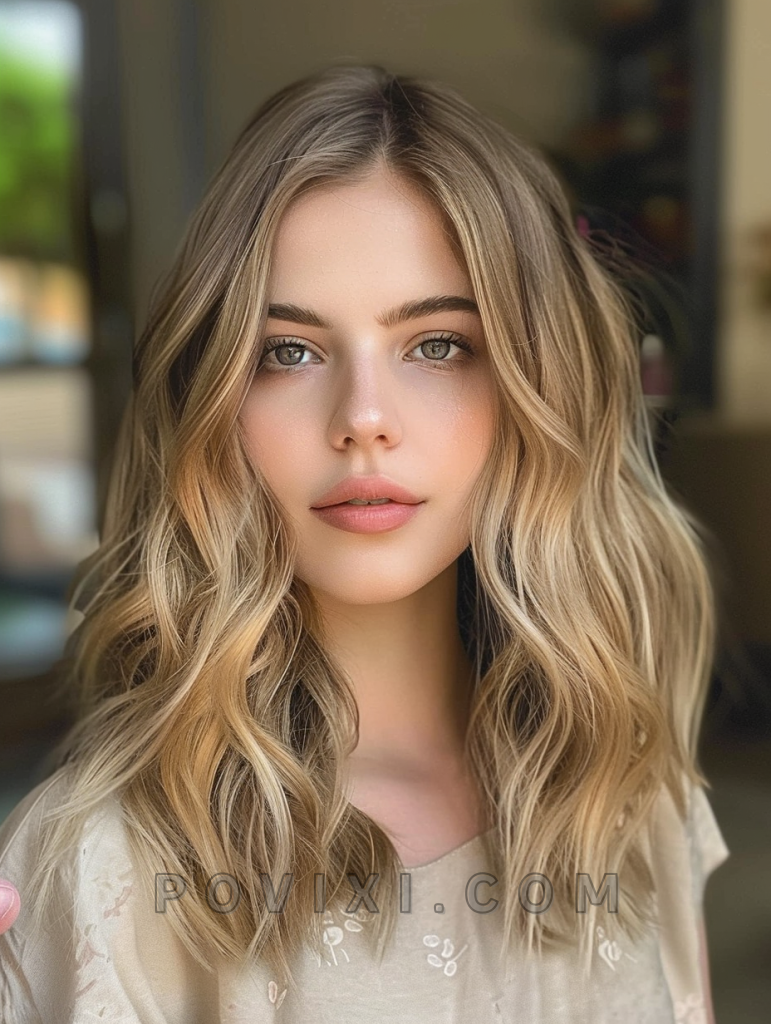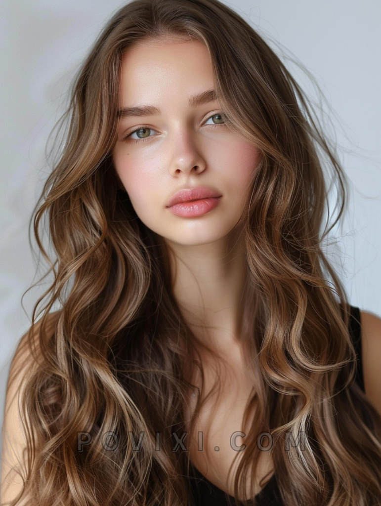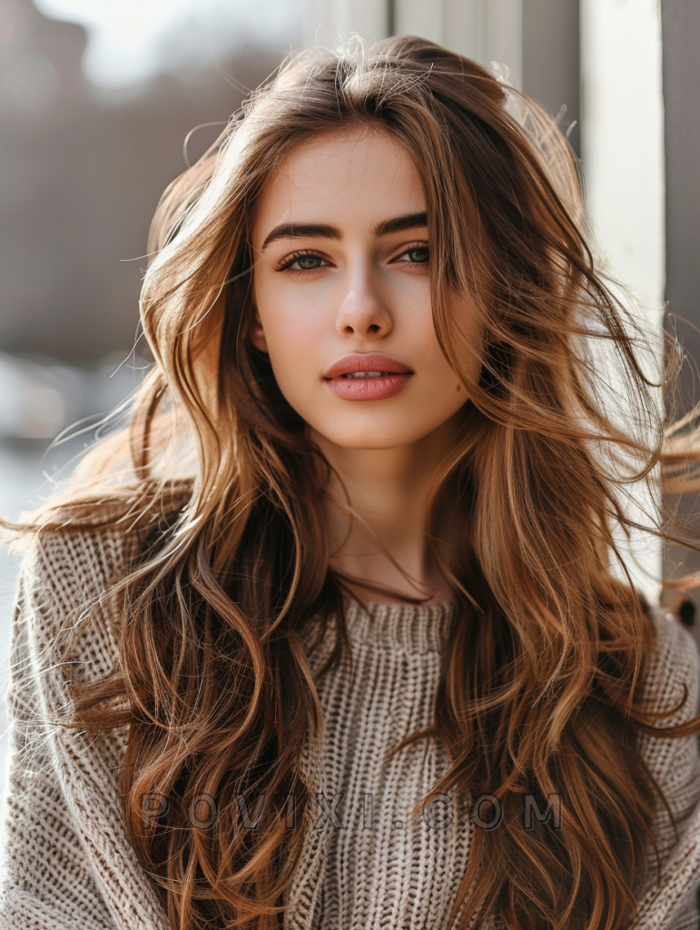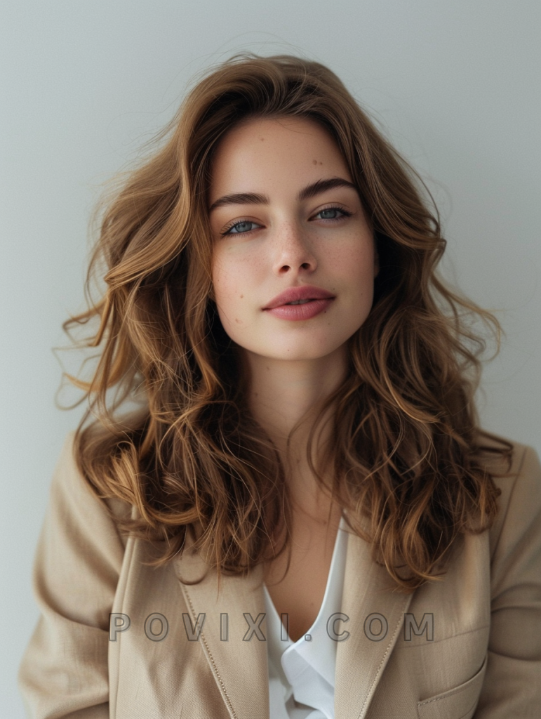 Long hair with minimal layers and a bohemian vibe works wonderfully on wavy hair, creating a dreamy and romantic look. This style suits almost any face shape and is perfect for those who prefer a more natural, carefree aesthetic.