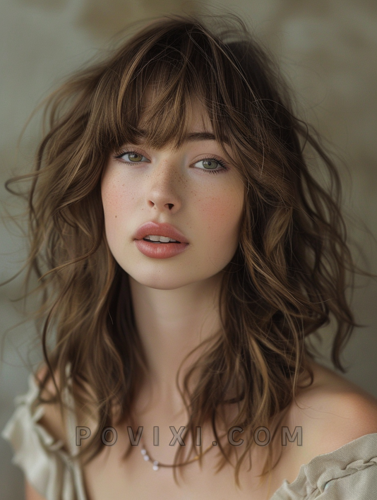 Revive the classic shag with a voluminous update perfect for wavy hair. The voluminous shag cut is all about creating texture and volume, ideal for adding body to fine wavy hair or managing thicker waves with style. This haircut is flattering for all face shapes, particularly those with more defined features.