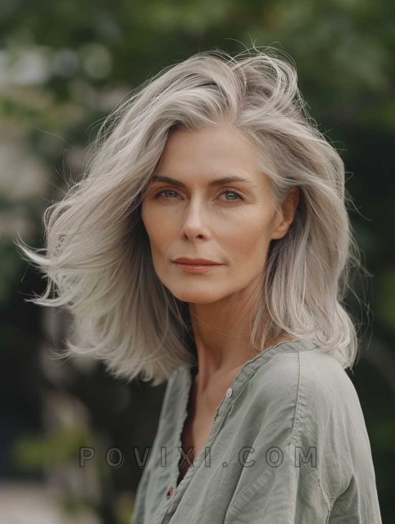 Use a color-enhancing shampoo to keep the silver tones bright and a light styling cream for daily manageability.